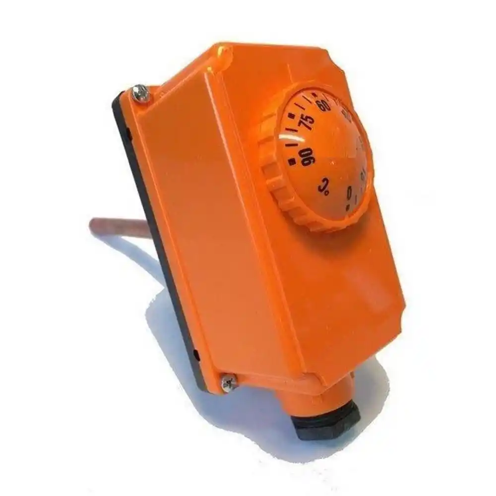 Bu termostat, doğrudan su ile temas eden bir koruyucu kovan (prob) içerisine yerleştirilir. 0-90°C arası geniş ayar skalası sayesinde, düşük ve orta sıcaklıktaki ısıtma çevrimlerinde suyun istenilen derecede sabit kalmasını sağlayarak hem enerji tasarrufu hem de sistem güvenliği sunar.