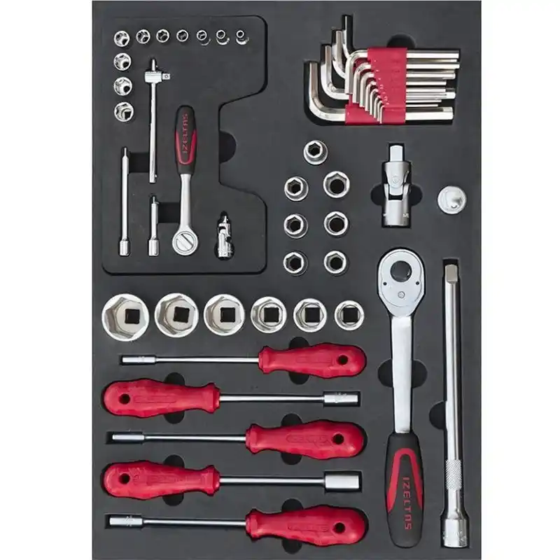 1/4″ Altı Köşe Lokma Takımı: 1/4″ Altı Köşe 4 – 5 – 6 – 7 – 8 – 9- 10 – 11 – 12 – 13, 1/4″ Cırcır kolu, 1/4″ T Kol, 1/4″ Ara Kol 50 – 100 mm, 1/4″ Mafsal