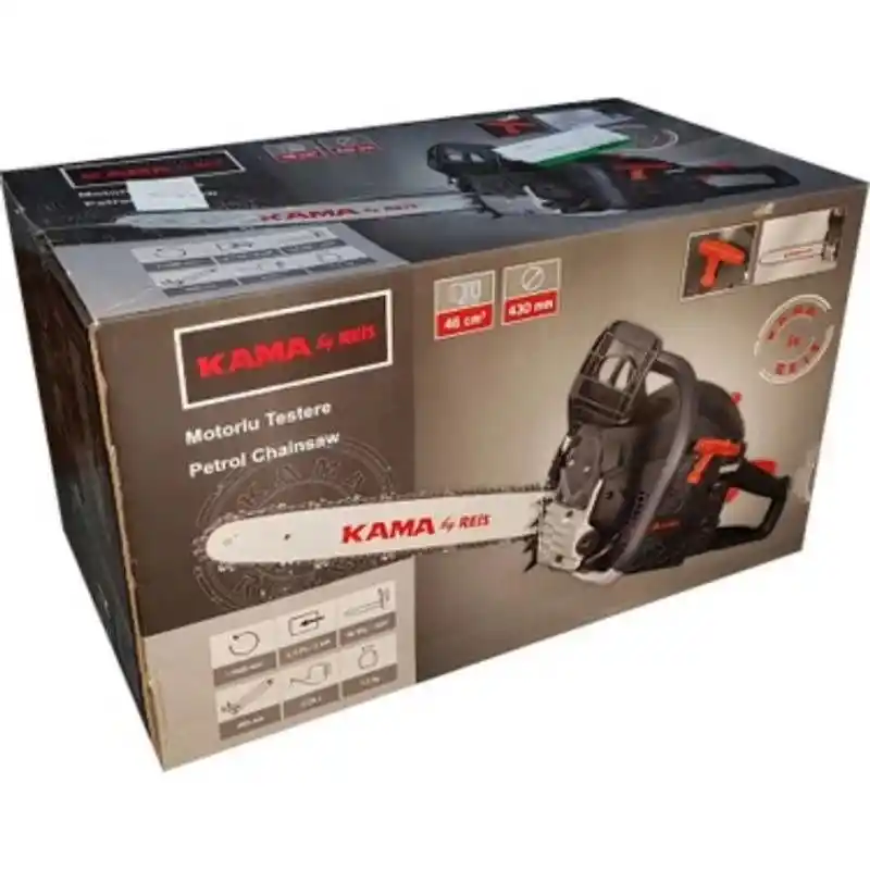Kama By Reis KMR46 benzinli ağaç kesme motoru, çalıştırma tipi iplidir. Ergonomik