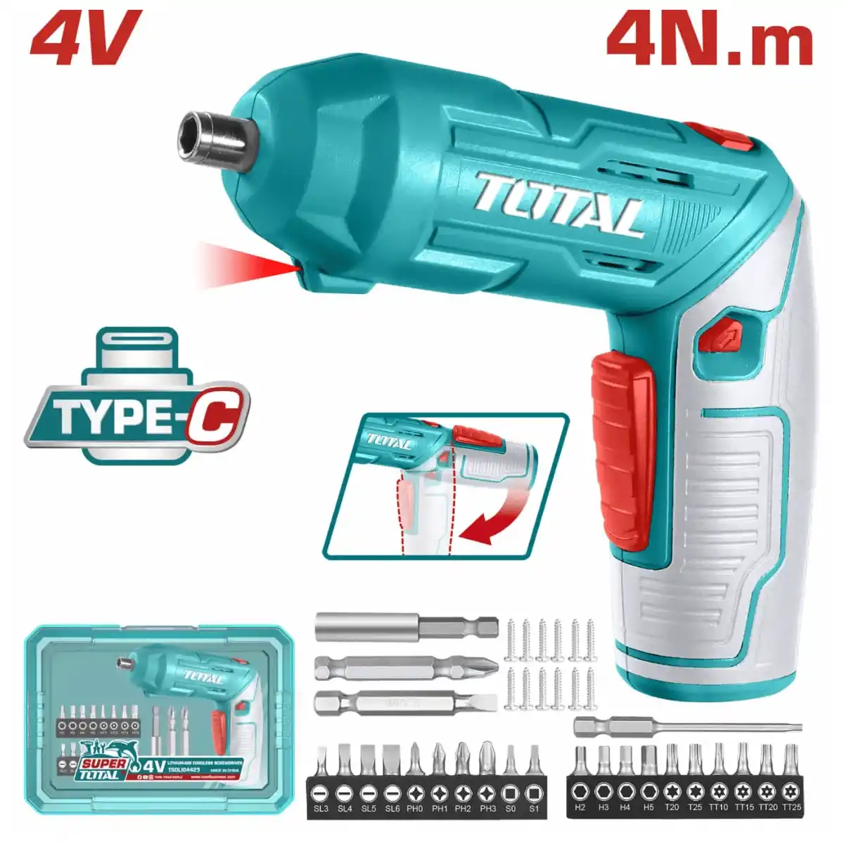 Total TSDLI04425 Akülü Katlanabilir Şarjlı Tornavida