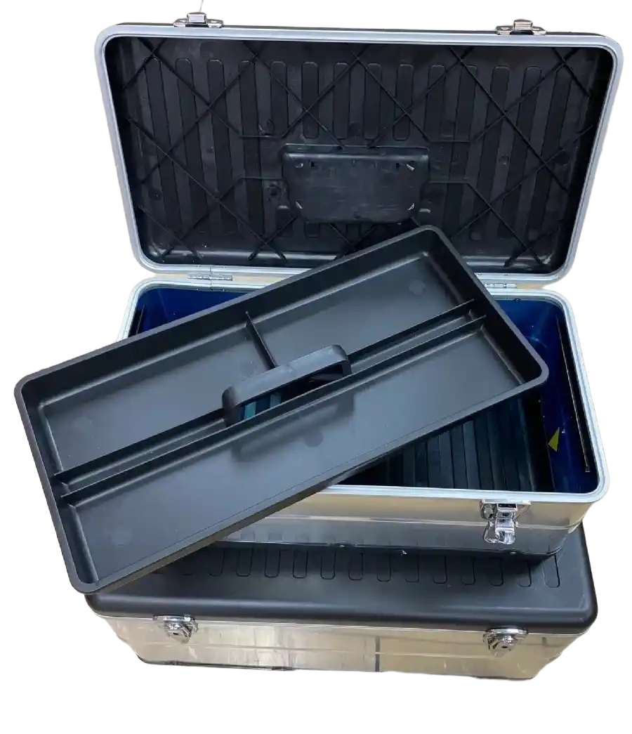 KNC RE2023, farklı boyutlardaki el aletlerini kategorize etmek için tasarlanmış, darbelere dayanıklı polimer gövdesi ve metal görünümlü sağlam kilitleriyle öne çıkan 2'li kombinasyon takım çantası setidir.