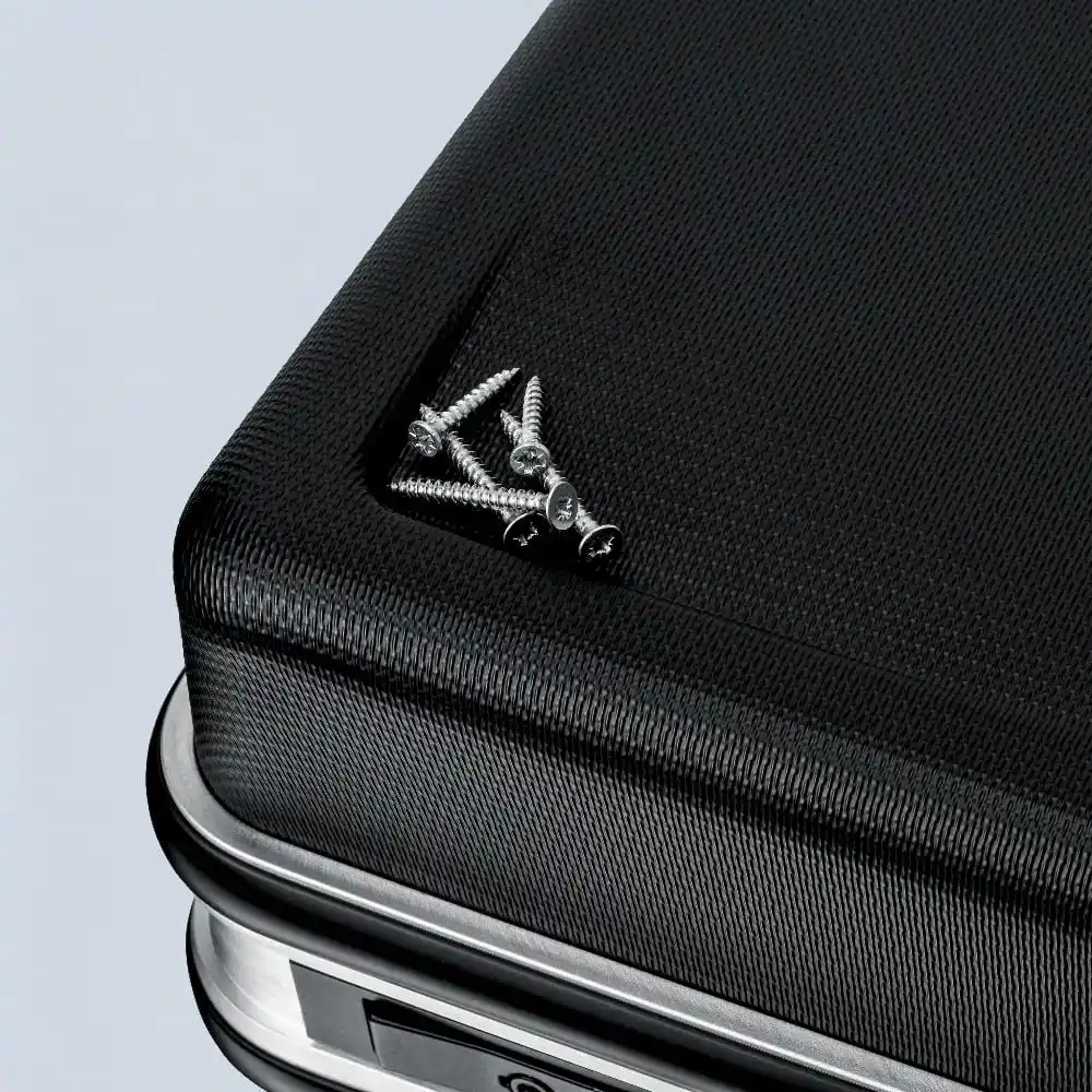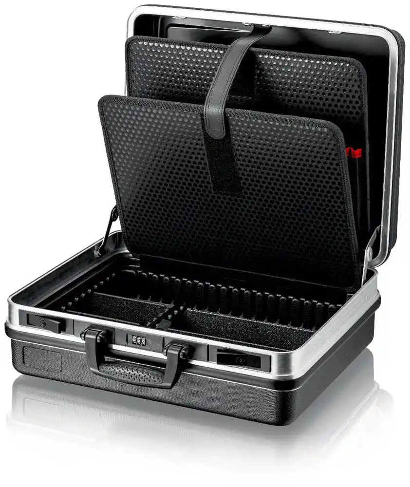50 mm yüksekliğe sahip taban tepsisi düğmeye basılarak sabitlenebilir, iç parçalarla ek bölmelere ayrılabilir; 12 büyük bölmelere ve düz bir bölmeye sahip kapak levhası