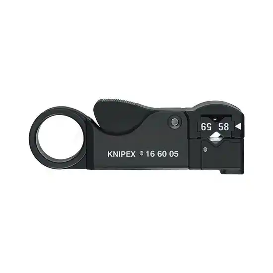 Knipex 16 60 05SB Coax Kablo Sıyırıcı, RG 58, RG 59 ve RG 62 gibi koaksiyel kabloların izolasyonunu hızlı ve hassas bir şekilde sıyırmak için tasarlanmıştır. Bu çok yönlü sıyırıcı, dış kılıfı, alüminyum sargıyı ve yalıtkan tabakayı tek bir işlemde kolaylıkla sıyırmanıza olanak sağlar.