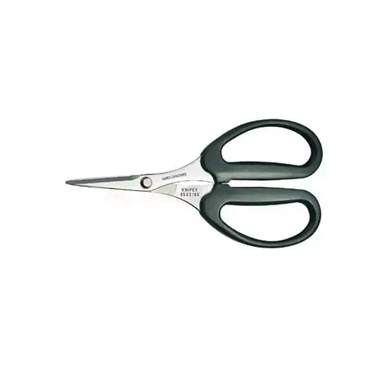 Knipex 95 03 160SB Makas, sert kromlanmış ve taşlanmış yüzeylere sahiptir, bu sayede dayanıklılık ve uzun ömürlü kullanım sunar. Fiber optik kablo kurulumu ve montajı gibi özel işlerde kullanılmak üzere tasarlanmıştır ve KEVLAR® elyafların zarar görmeden kesilmesini garanti eder.