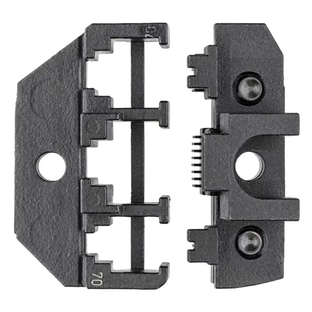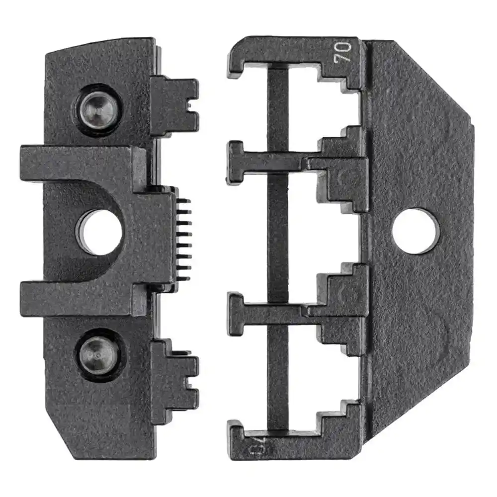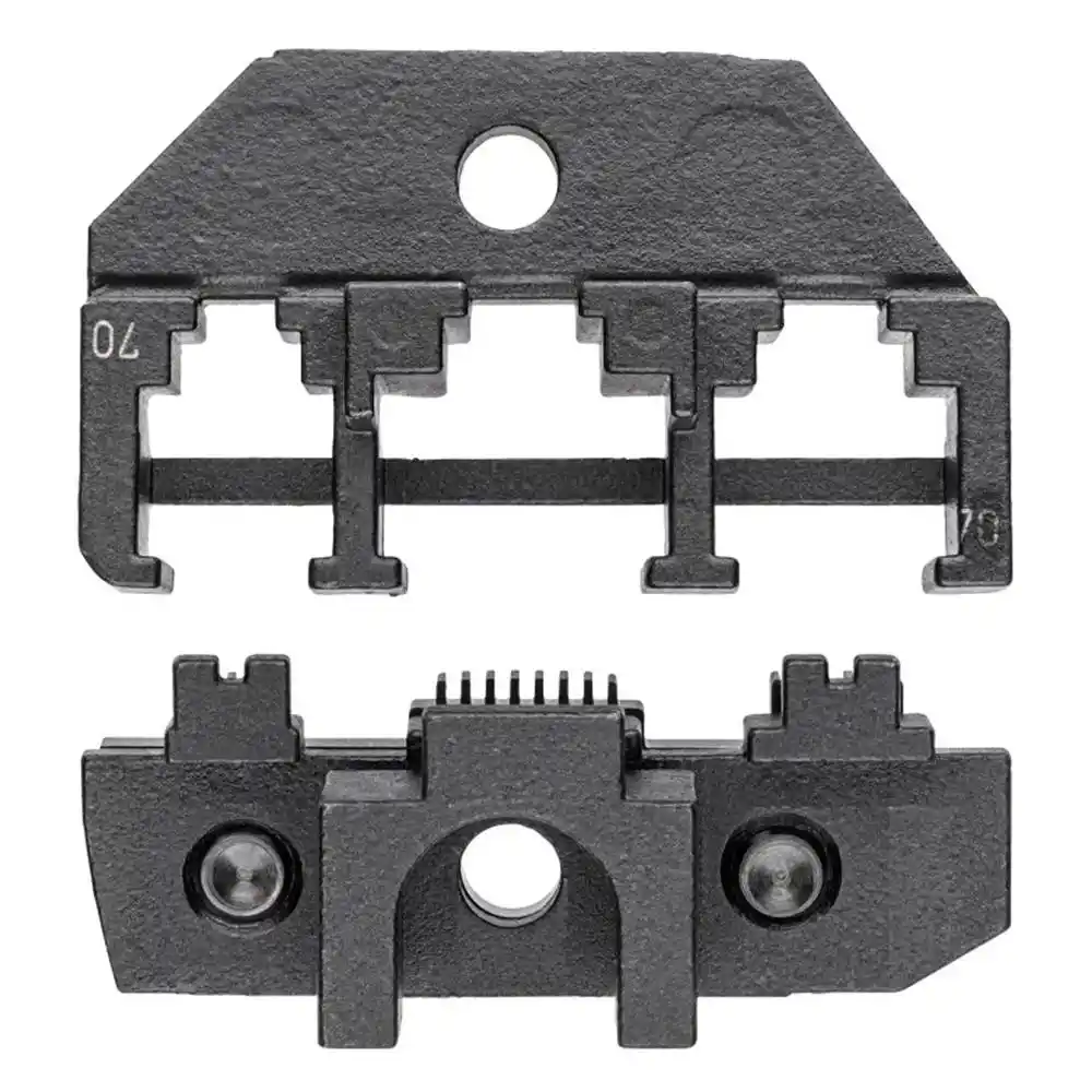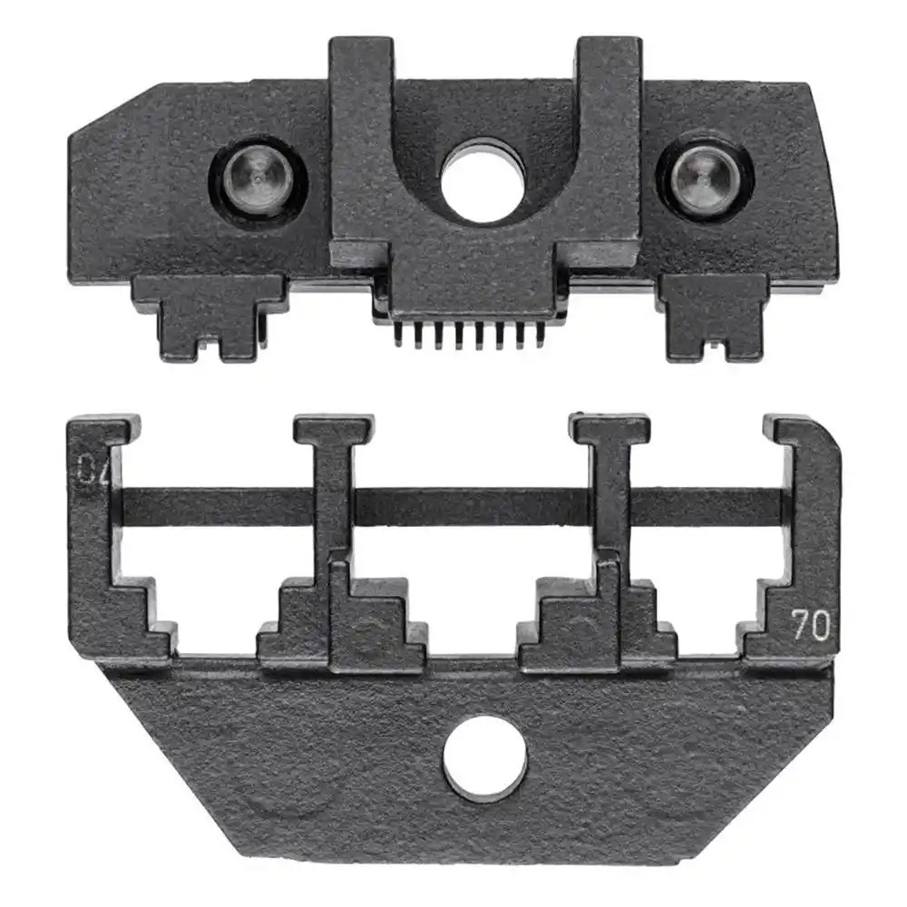 Knipex 97 49 70, veri ve telekomünikasyon ağlarında kullanılan RJ10, RJ11, RJ12 ve RJ45 tipi modüler konnektörleri, Knipex sistem penseleriyle uyumlu şekilde yüksek hassasiyetle sıkmak için tasarlanmış profesyonel bir sıkma profilidir.