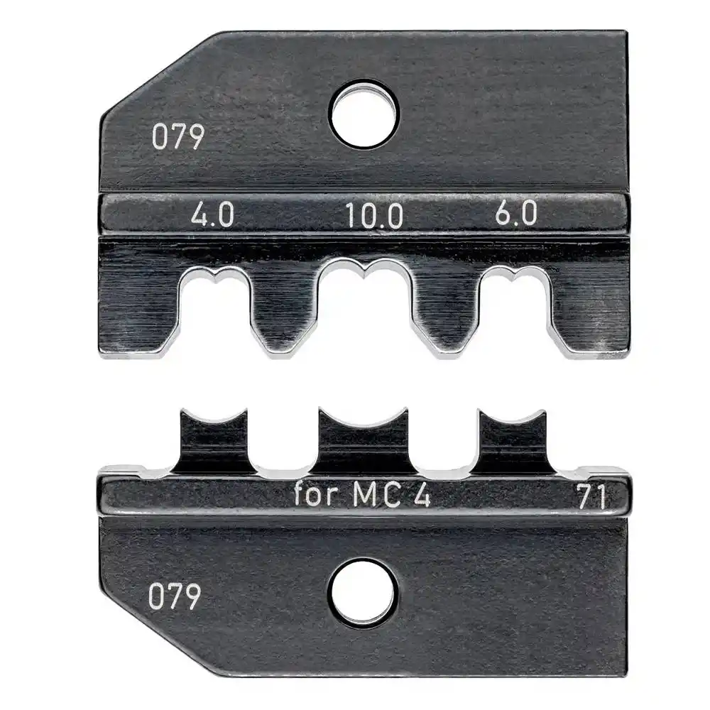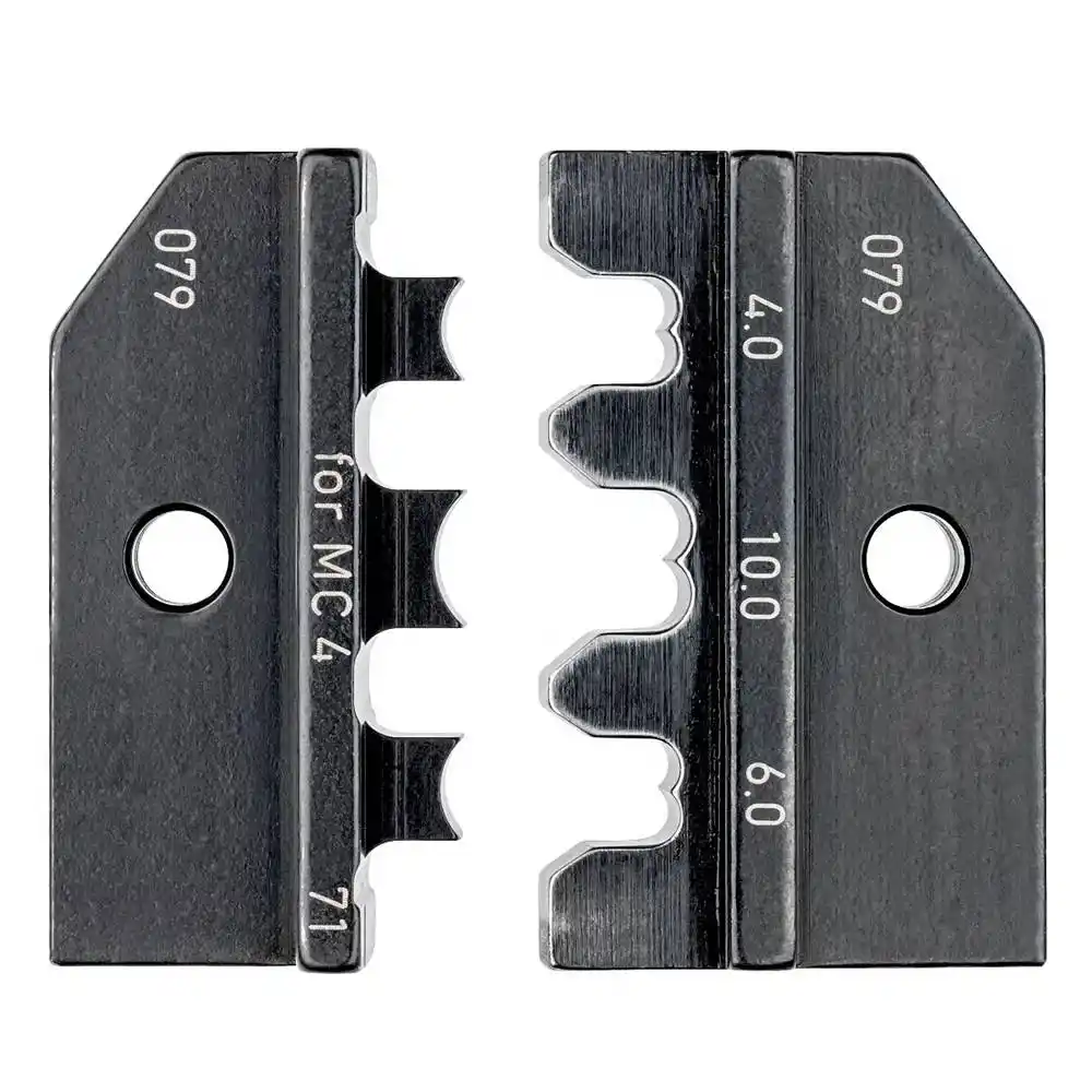 Knipex 97 49 71, güneş paneli montajlarında kullanılan MC4 solar konektörlerin kablo üzerine hatasız ve hava sızdırmaz şekilde sabitlenmesini sağlayan, Knipex sistem penseleriyle uyumlu değiştirilebilir bir sıkıştırma kalıbıdır.