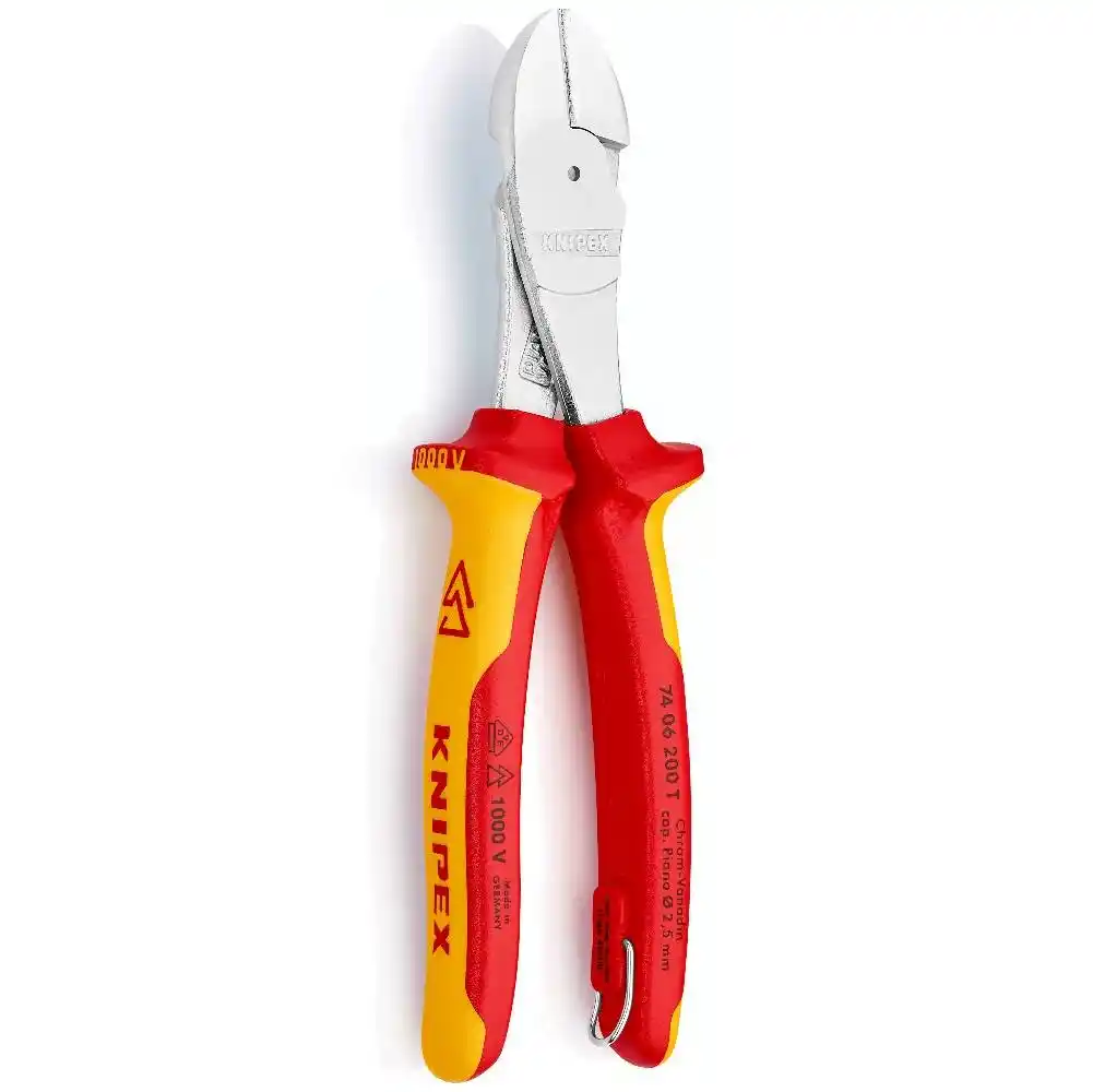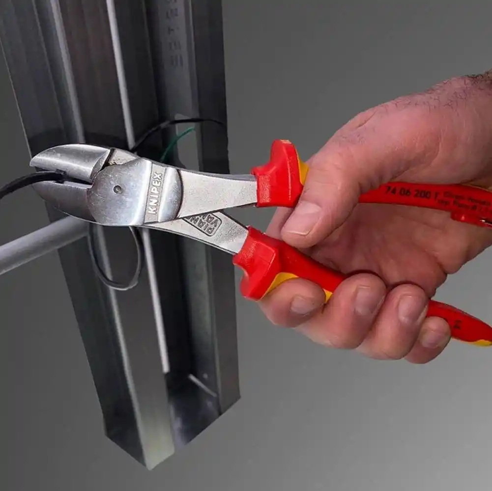 Knipex 74 06 200 T, el gücünü kesici ağızlara %20 daha fazla ileten yüksek kaldıraçlı mafsal tasarımıyla üretilmiş, 1000V izoleli ve piyano teli kesebilen profesyonel bir ağır hizmet kesici pensesidir.