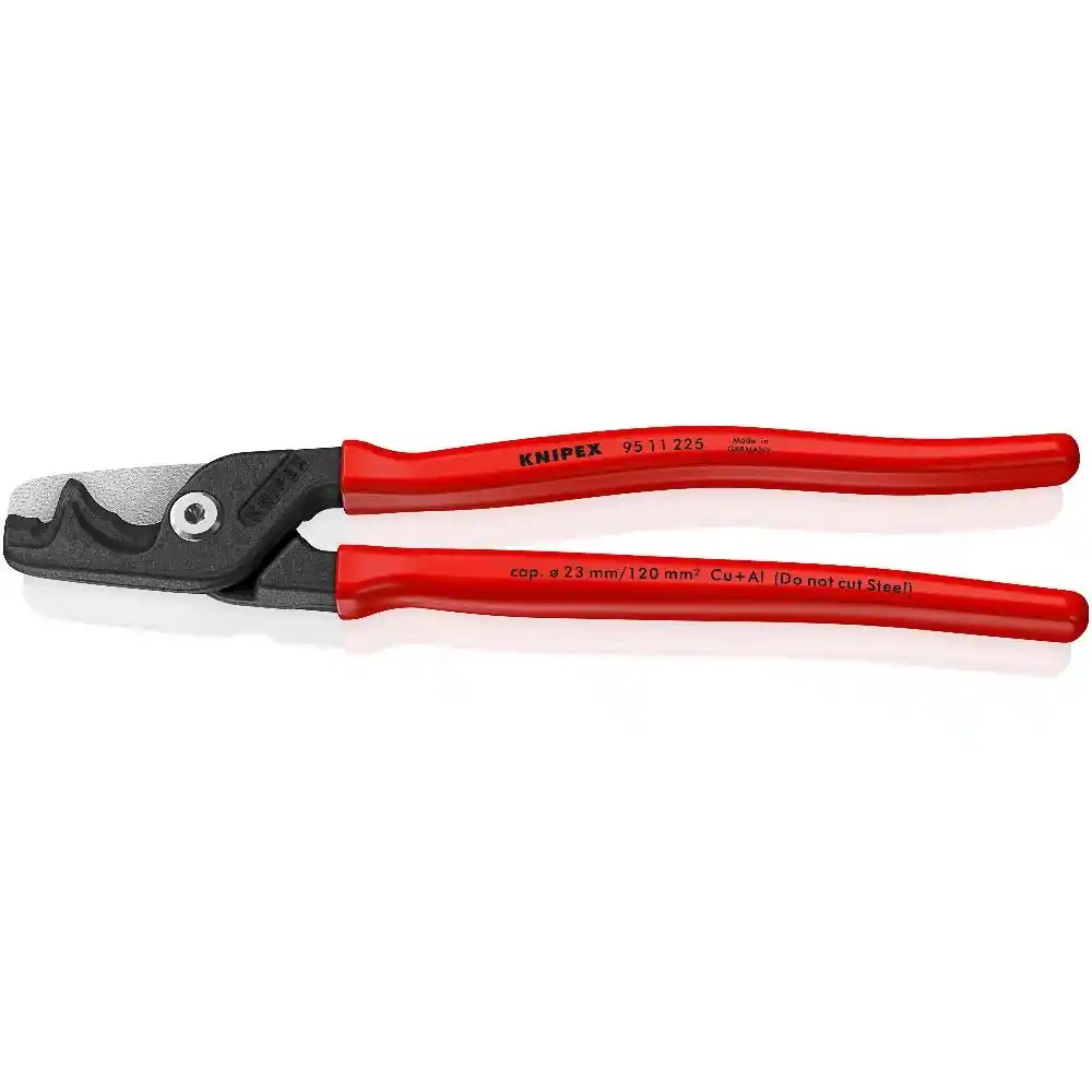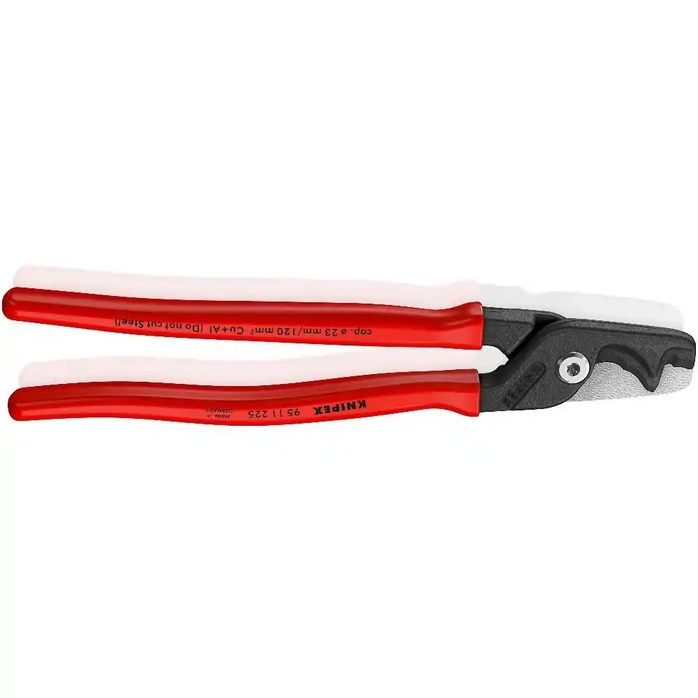 Yüksek kesme kapasitesi: 35 mm²'ye kadar katı bakır veya alüminyum kabloları, 70 mm²'ye kadar çok telli kabloları ve 120 mm²'ye kadar ince telli kabloları keser.
