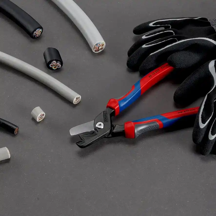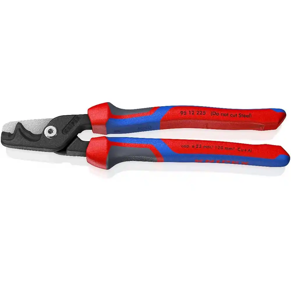 Knipex 95 12 225 StepCut XL Kademeli Kesimli Kablo Makası, endüstriyel tesislerde çok telli kabloları kesmek veya konut binalarındaki ev bağlantıları için mükemmeldir.