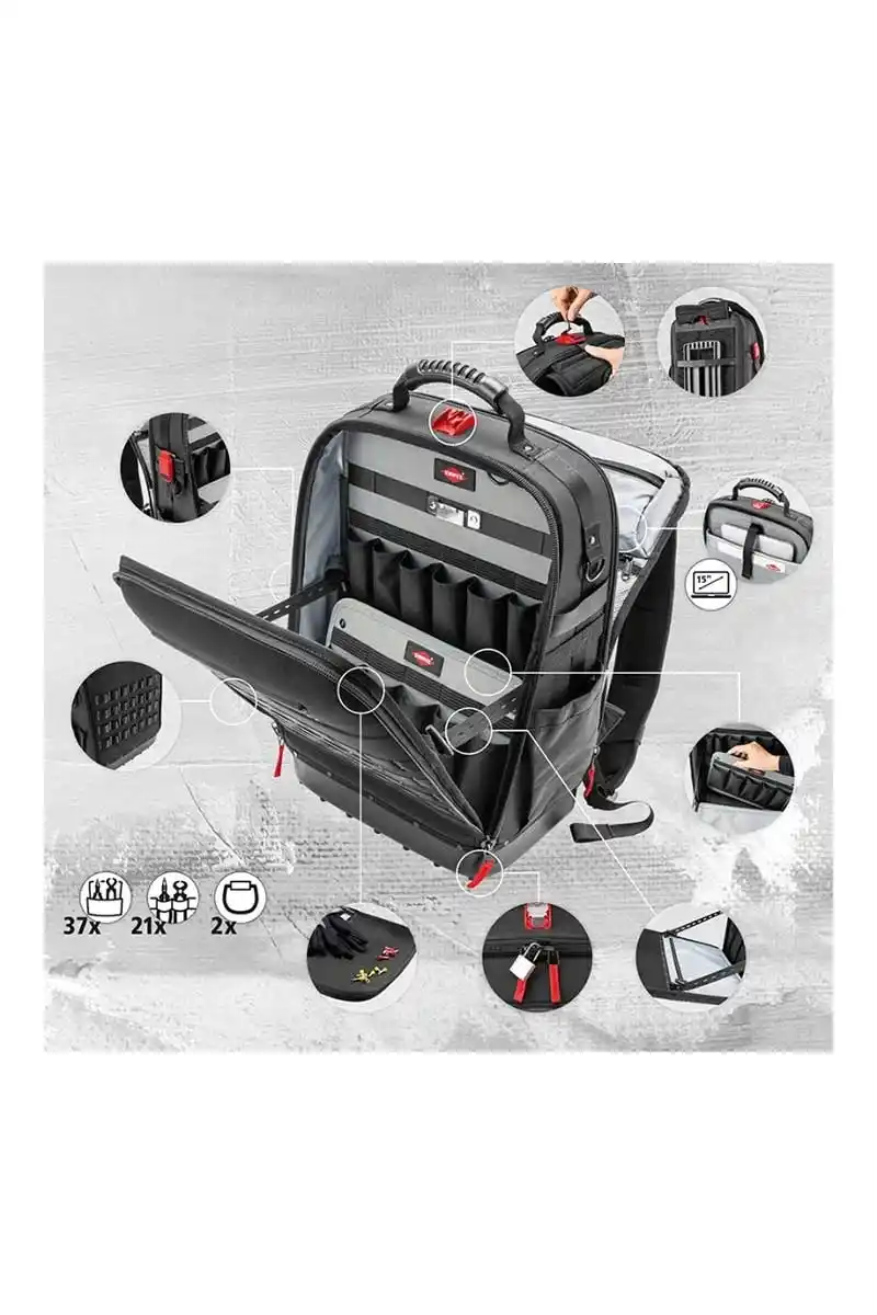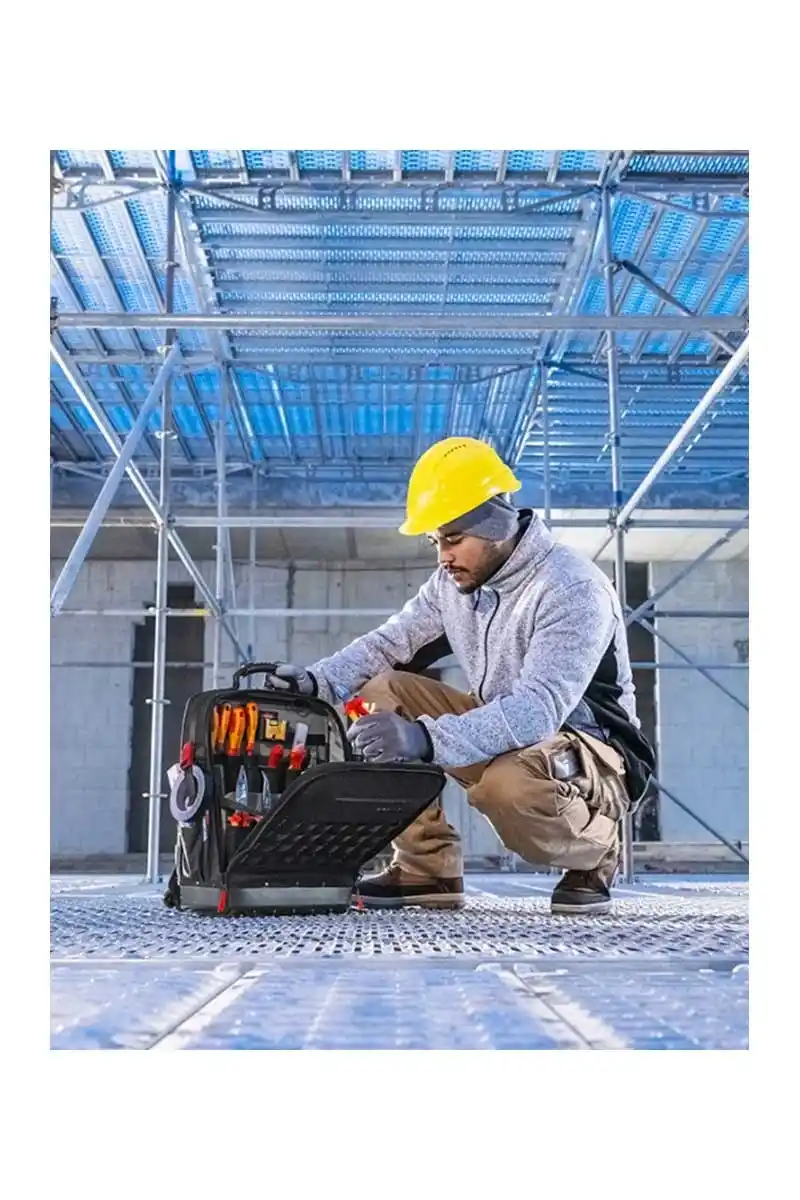 Her türlü zorluğa uygun: aletler, ölçüm aletleri, dizüstü bilgisayar veya tablet için iki ayrı iç bölme