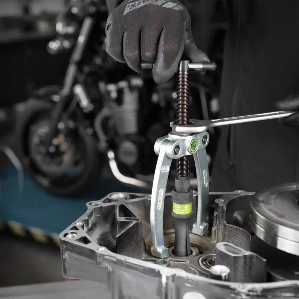 Kukko 21 serisi segmentli çektirme aparatları, 15-16'lı geniş dişli yapıları sayesinde içten kavrama prensibiyle çalışır. Cihaz, özellikle rulman yatakları, burçlar ve sızdırmazlık halkalarının çıkarılması için geliştirilmiştir. Ekstra ince tasarlanmış çekme dudakları, sökülecek parçanın en dar noktalarına dahi güvenli bir şekilde tutunarak güçlü bir çekme kuvveti oluşturur.