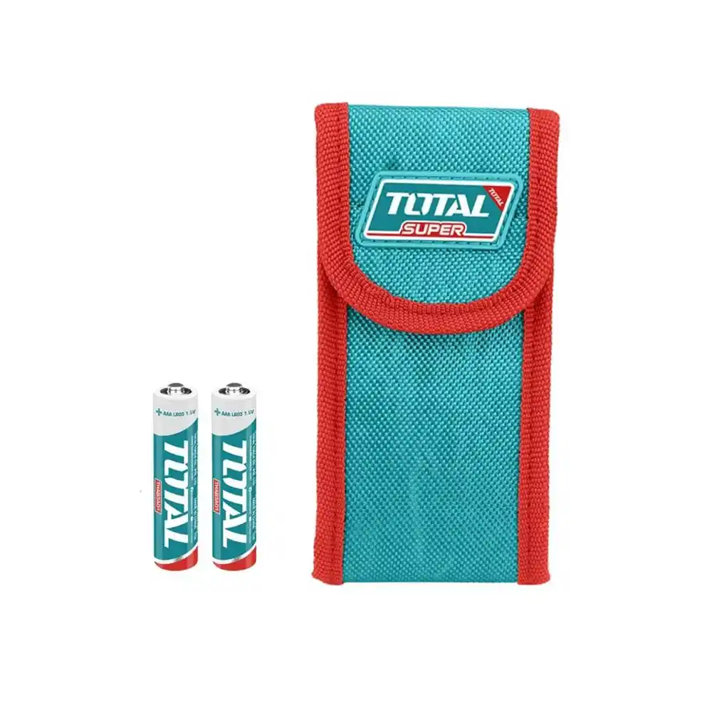Total TMT570268, 635nm dalga boyunda lazer ışını kullanarak 85 metreye kadar olan mesafeleri, alanları ve hacimleri dijital olarak hesaplayan endüstriyel bir mesafe ölçerdir.
