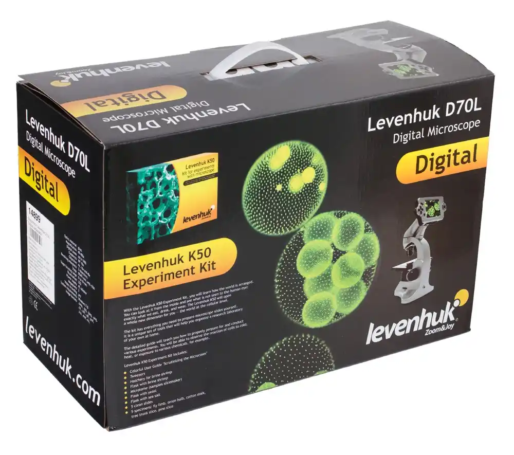 Levenhuk D70L Dijital Biyolojik Mikroskop, ayrıca Levenhuk dijital kameralar (ek kameralar ayrıca satın alınır) ile de uyumludur. Göz merceği tüpü içerisine bir göz merceği yerine Levenhuk kameralar monte edilmiştir.