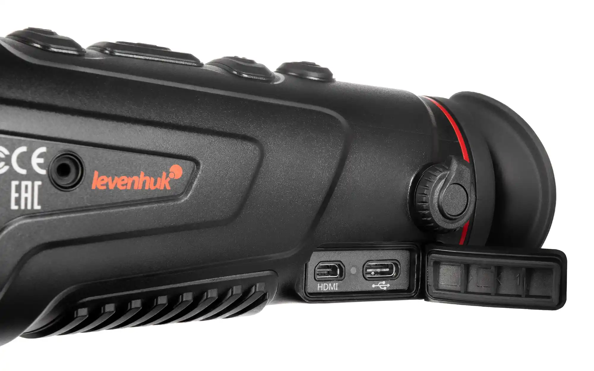 Ek özellikler arasında bir kayıt cihazı ve mesafe ölçer bulunur. Kayıt cihazı, gözlemlerinizi fotoğraf ve video formatında yakalayabilir – veriler, kullanılabilir 16 GB dahili belleğinde saklanır. Mesafe ölçer, herhangi bir ek alete ihtiyaç duymadan hedefe olan mesafeyi hesaplamanızı sağlar. Cihaz iki tür iletişim protokolünü destekler: Wi-Fi ve Bluetooth. İlki, TargetIR uygulaması aracılığıyla resimleri görüntülemek ve galeriye erişmek için termal görüşlü monoküler dürbünü bir akıllı telefonla eşleştirebilir. İkincisi, uzaktan kumanda kullanımı için gereklidir. Ayrıca cihaz, harici bir ekrana bağlanmak için kullanılan microHDMI ve veri aktarımı ve cihaz şarjı için Type-C olmak üzere iki bağlantı noktasına sahiptir. Cihaz, 5 saatlik sürekli çalışma için yeterli olan 6000 mAh toplam kapasiteli bir çift şarj edilebilir pil ile çalışır.