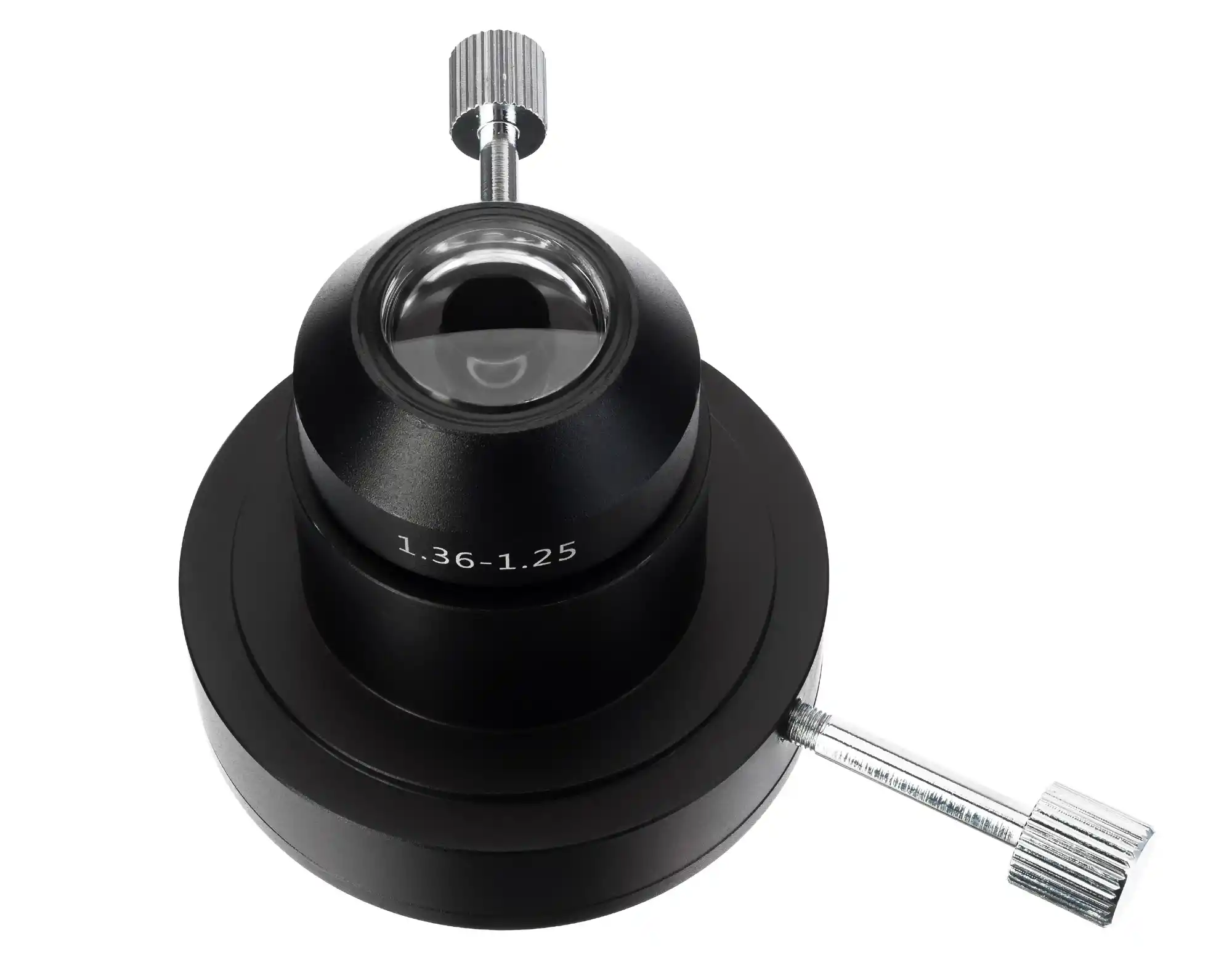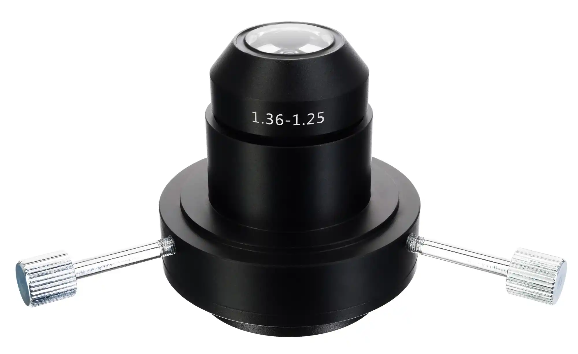 Bu kondansatör modeli özel olarak Levenhuk MED 30/35/40/45 mikroskoplar için tasarlanmıştır ve ayrıca benzer parametrelere sahip başka modellere de monte edilebilir. Kondansatör yalnızca yağa daldırma objektifleri ile kullanım için tasarlanmıştır. Kondansatör optik elemanları camdan üretilmiştir, gövde alüminyumdan imal edilmiştir.