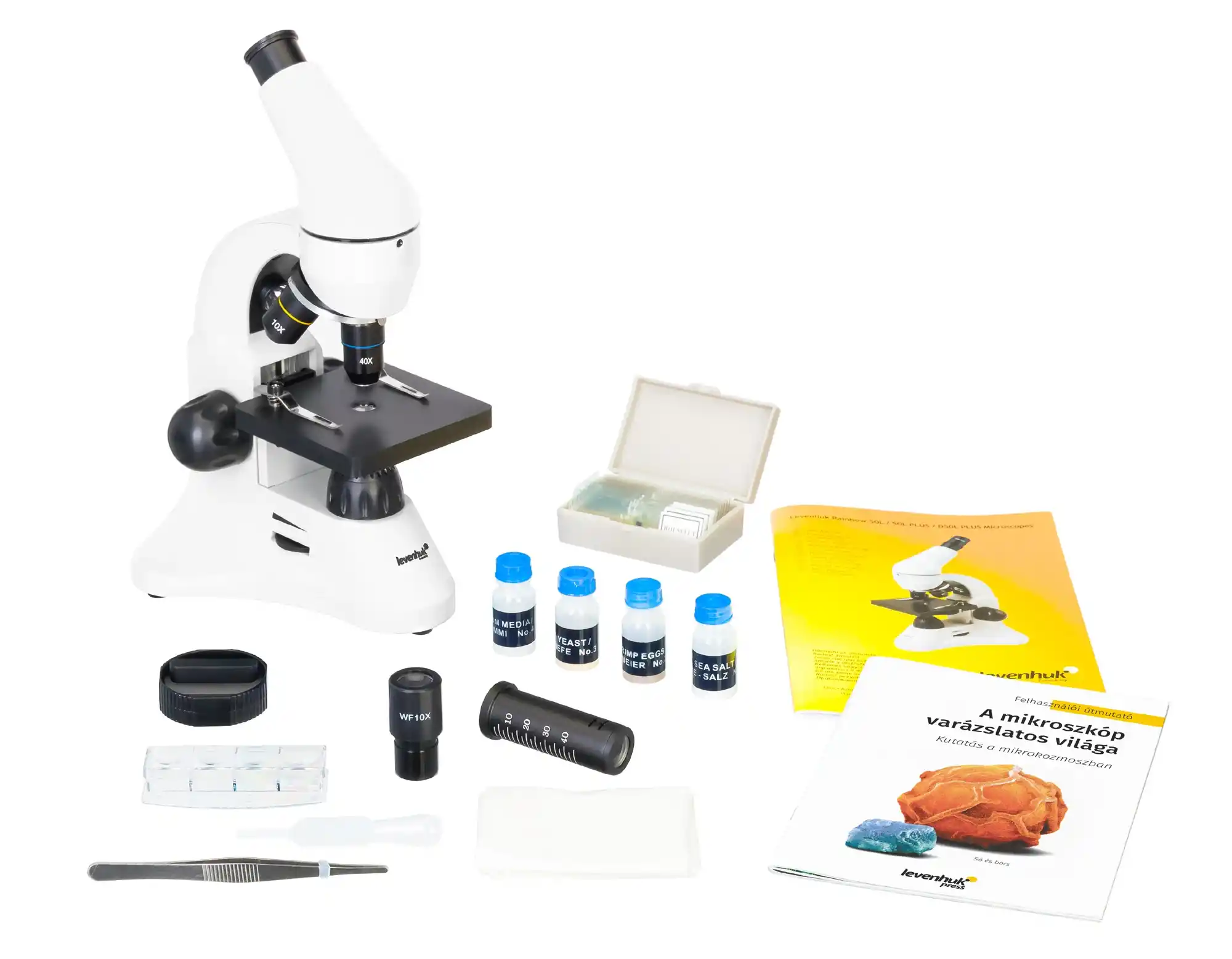 Mikroskop, bir dizi heyecan verici deney yapmanıza olanak tanıyacak bir deney setiyle birlikte sunulur. Kit, yeni mikroskopunuzu hemen deneyebilmeniz için hazırlanmış numunelerin yanı sıra kendi numunelerinizi hazırlamanız için araçları içerir. Kite dahil bir kullanışlı kullanım kılavuzu ile mikroskopun yapısı hakkında faydalı bilgiler, mikroskopla çalışma için ipuçları ve ilgi çekici deneylerin açıklamaları sunulmaktadır.