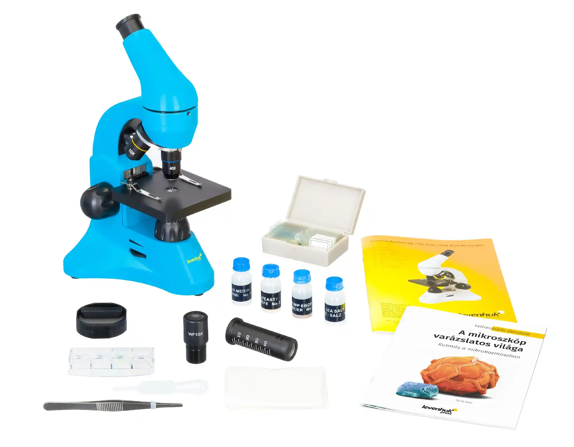 Mikroskop, bir dizi heyecan verici deney yapmanıza olanak tanıyacak bir deney setiyle birlikte sunulur. Kit, yeni mikroskopunuzu hemen deneyebilmeniz için hazırlanmış numunelerin yanı sıra kendi numunelerinizi hazırlamanız için araçları içerir. Kite dahil bir kullanışlı kullanım kılavuzu ile mikroskopun yapısı hakkında faydalı bilgiler, mikroskopla çalışma için ipuçları ve ilgi çekici deneylerin açıklamaları sunulmaktadır.