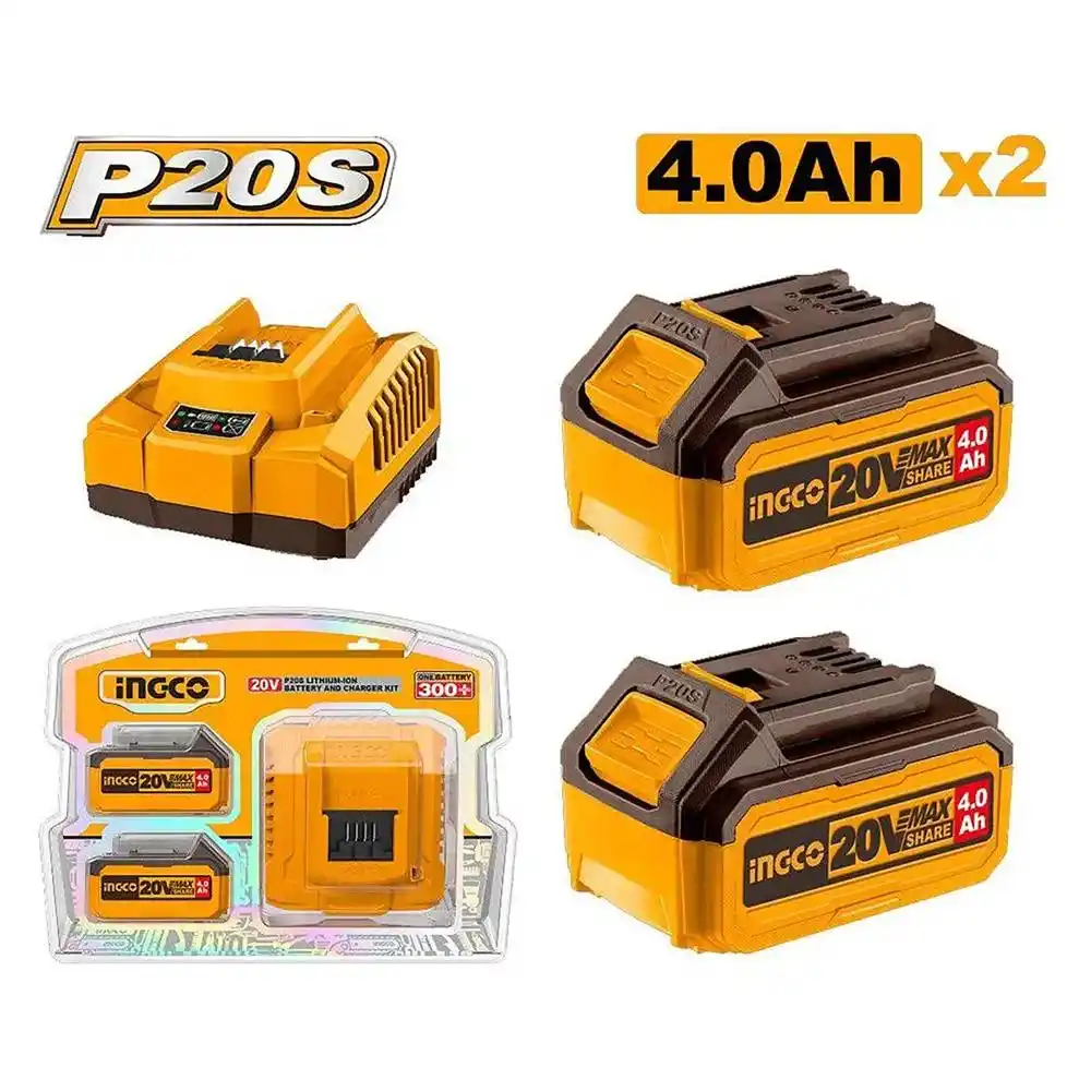 Ingco FBCPK1424E Yedek Akü ve Şarj Cihazı Seti 20V 2x4.Ah