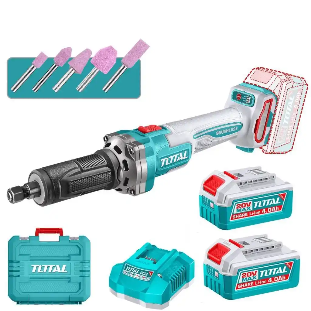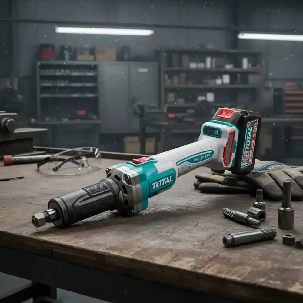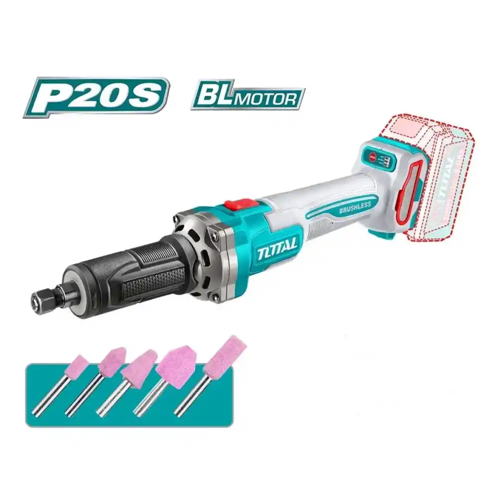 Total TDGLI20012E, 20V lityum-iyon batarya ile beslenen, fırçasız (brushless) motor teknolojisine sahip, dar alanlarda metal taşlama ve temizlik işleri için tasarlanmış profesyonel bir el aletidir.