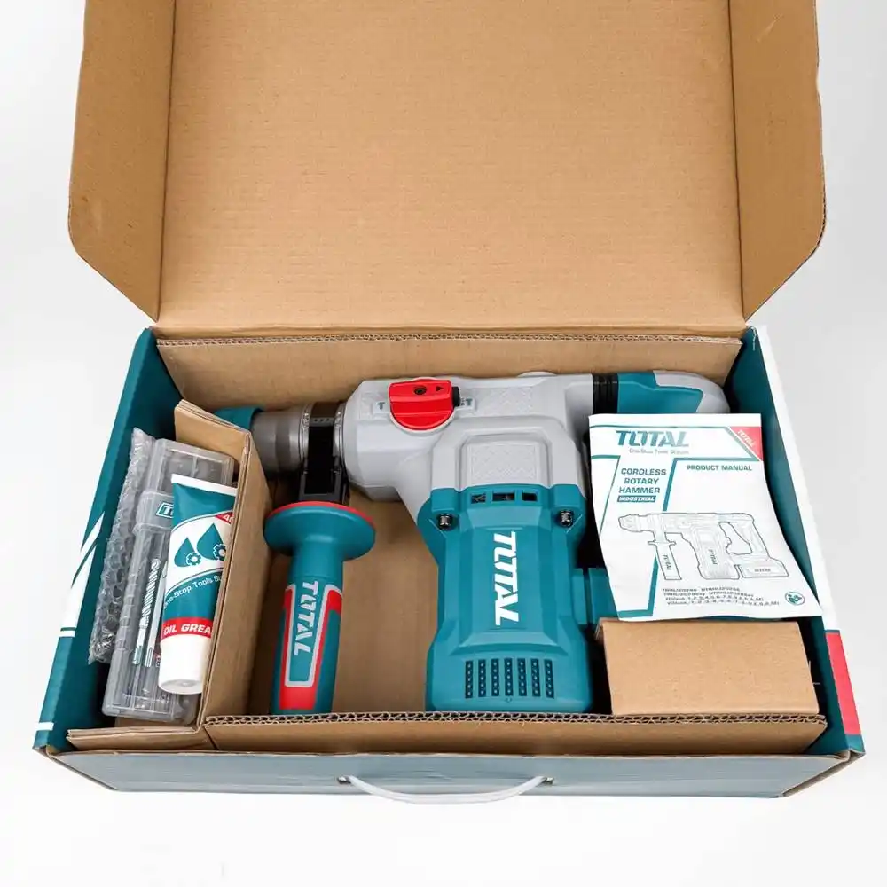 Total TRHLI20286, pnömatik darbe mekanizması ve fırçasız (brushless) motor teknolojisini birleştiren, kablo bağımlılığını ortadan kaldıran 20V profesyonel bir kırıcı delicidir.