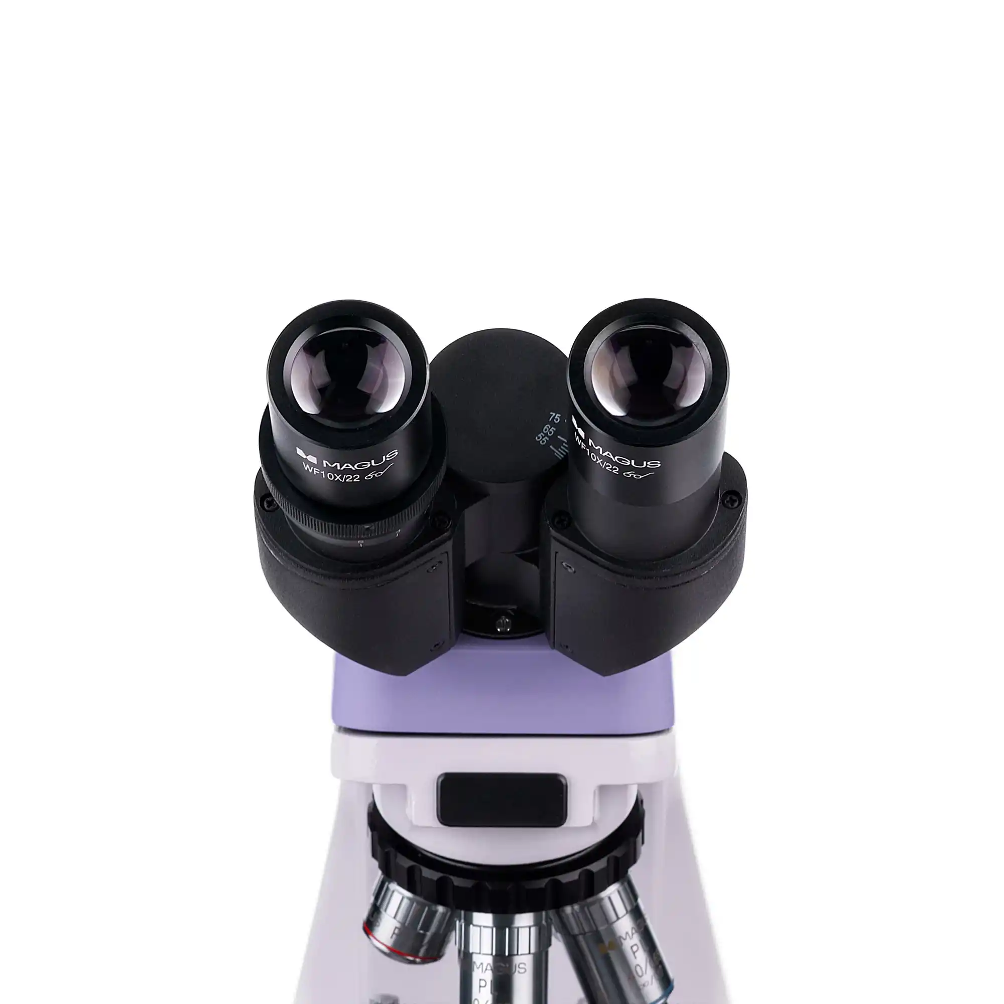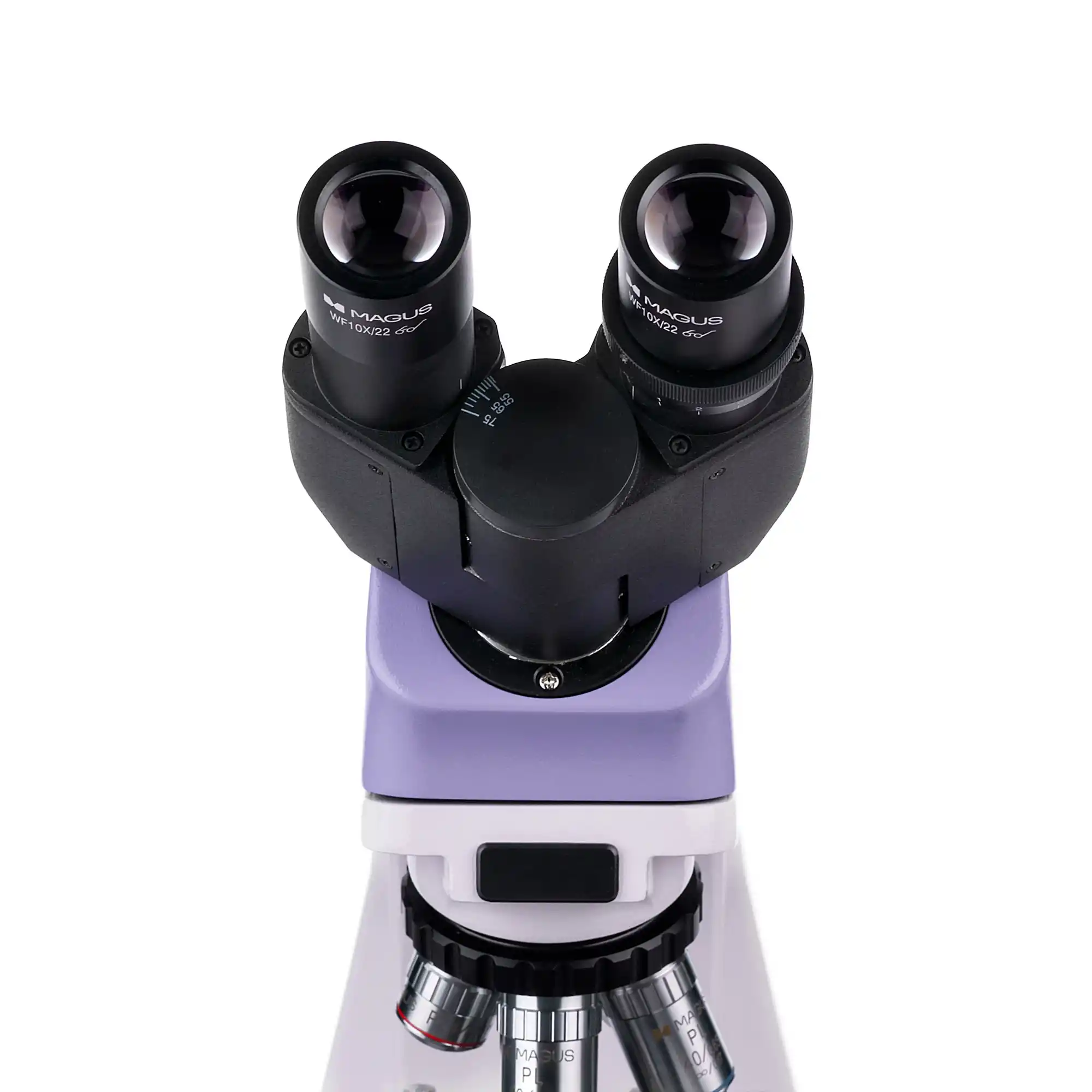 Mikroskop başlığının konumu uzun süreli çalışmalar için rahattır. Göz merceklerinin yüksekliği, göz merceği tüplerinin 360° döndürülmesiyle ayarlanabilir. Sol tüpte bir diyopter ayar halkası bulunur ve içine bir dijital kamera da monte edilebilir (kamera dahil değildir).