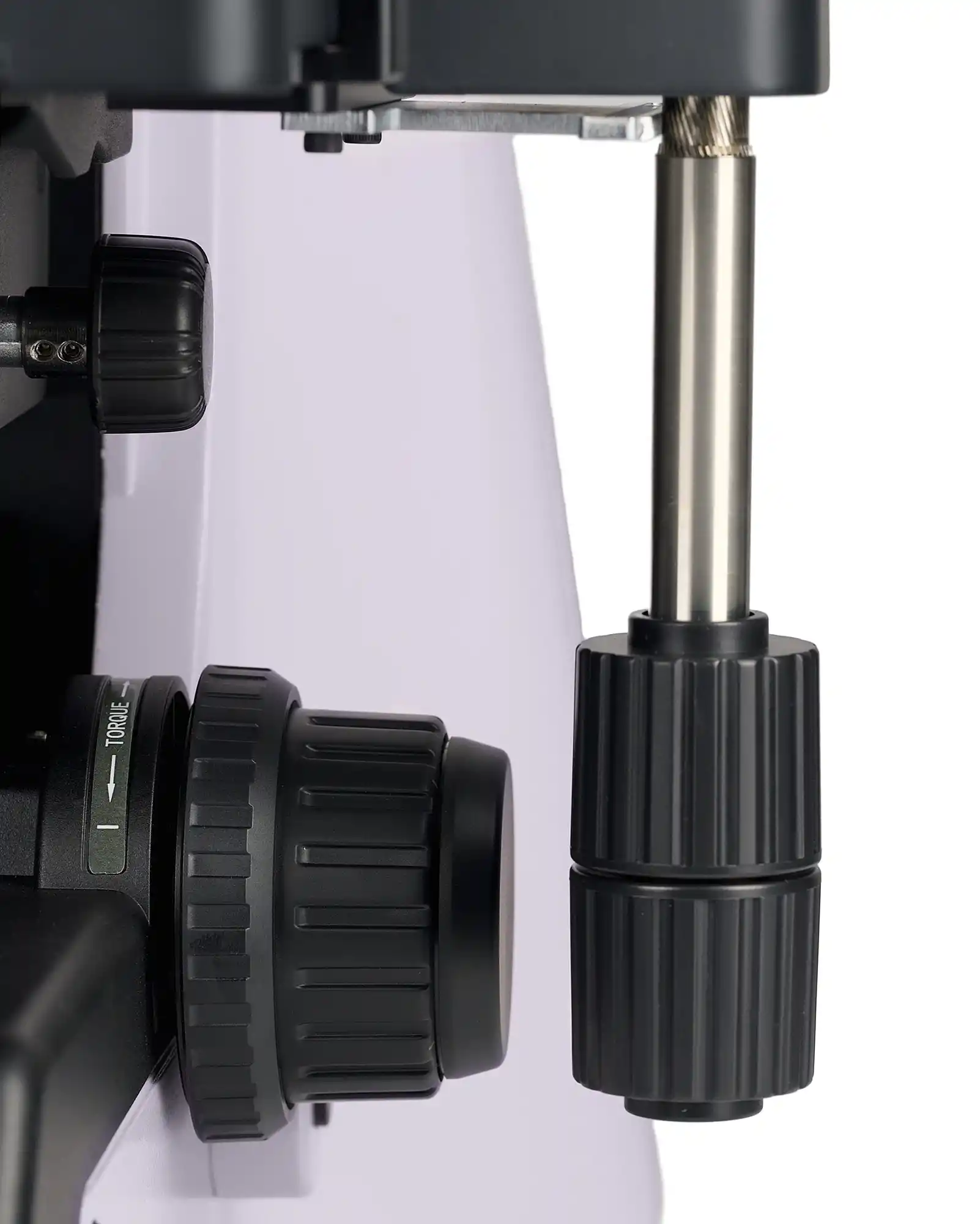 Kaba odak kilitleme düğmesi, çalışma nesnesini değiştirdikten sonra mikroskobu hızlı bir şekilde ayarlamanıza yardımcı olur. Düğme, mikroskobun sol tarafında, odaklama mekanizmasıyla aynı eksende bulunur.
