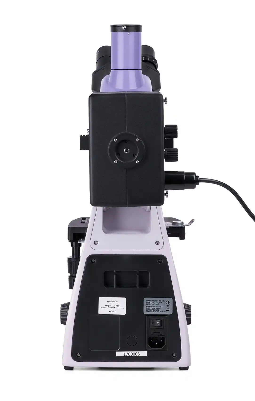 Bu bir trinoküler mikroskoptur: Binoküler başlık 30° eğimlidir ve dijital kamera (dahil değildir) trinoküler tüp içerisine takılır. Göz merceği tüpleri 360° dönebildiğinden, kullanıcının boyuna uyacak şekilde kolayca ayarlanabilir.