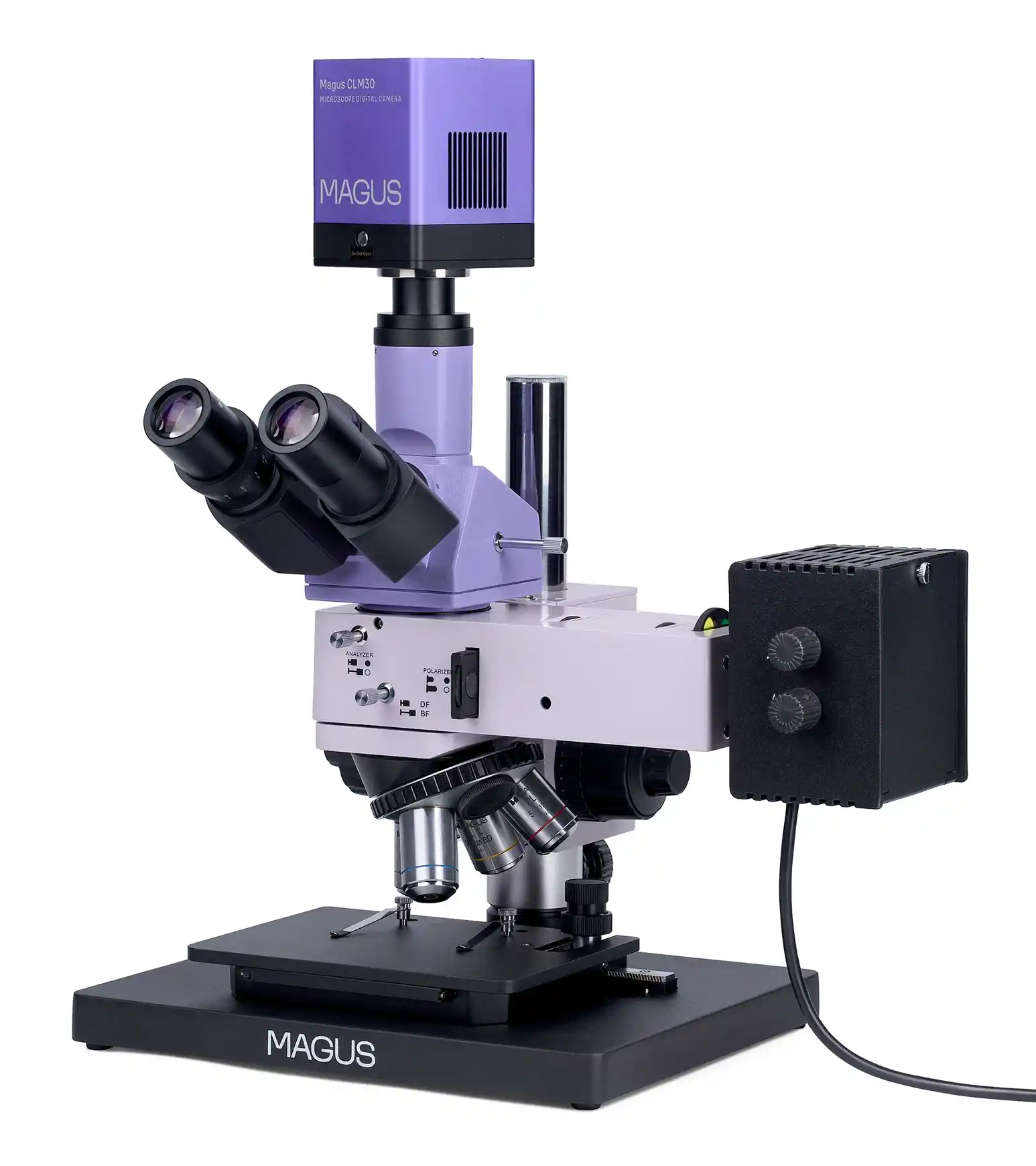 Parlak alan, karanlık alan ve polarizasyon mikroskopi teknikleri için MAGUS Metal D630 BD Metalurji Dijital Mikroskobu. Güçlü halojen aydınlatma, her türlü objektif merceği ve her türlü mikroskopi yöntemiyle kaliteli bir görüntü üretir. Mikroskop, metal ve yarı iletken malzemelerin ve opak nesnelerin mikro yapısının kalite kontrolü ve incelenmesi için tasarlanmıştır. Üretim tesislerinde, araştırma merkezlerinin laboratuvarlarında ve üniversite bölümlerinde araştırma yapmak için kullanılır.