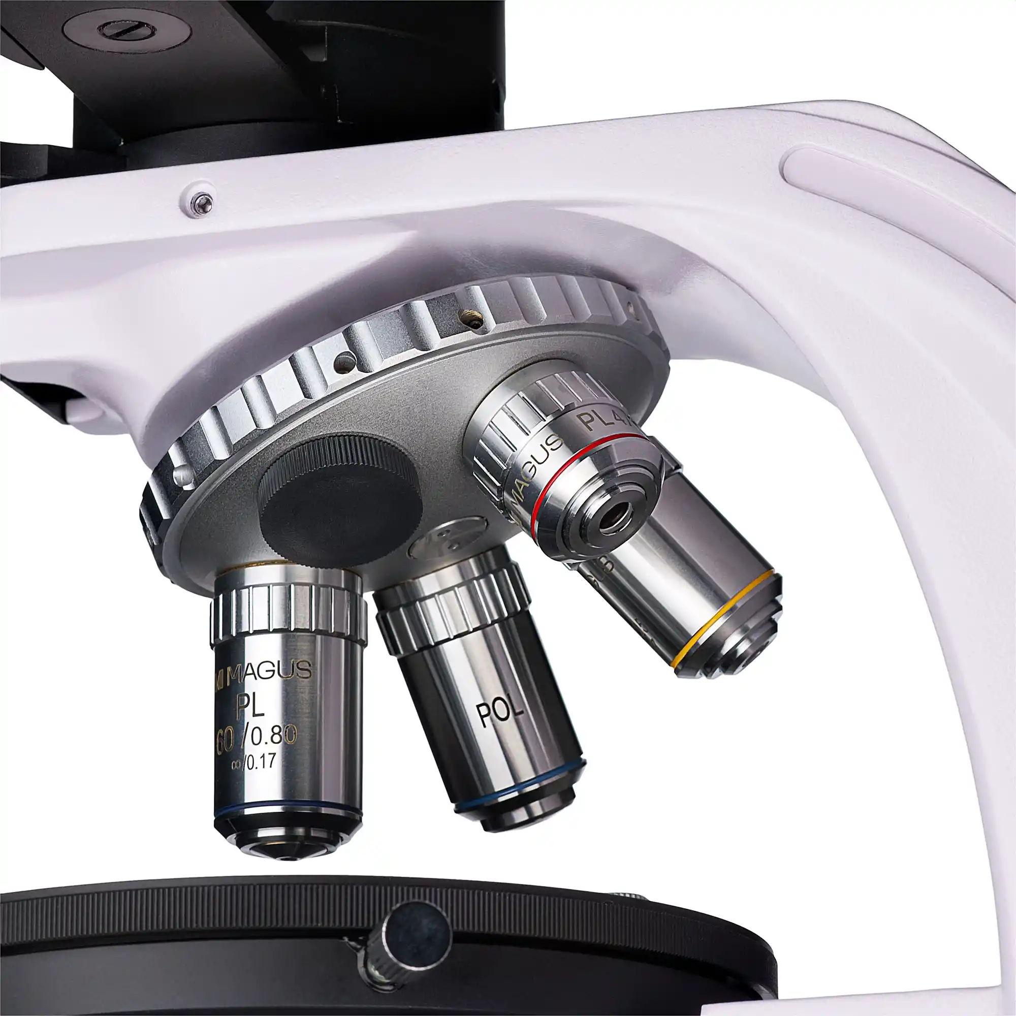 Döner burun parçası, dördü halihazırda pakete dahil olmak üzere beş objektifin aynı anda takılması için tasarlanmıştır. MAGUS aksesuar serisinden ek bir objektif ayrıca satın alınabilir. Tüm objektifler 0,17 mm kalınlığında lamellerle çalışacak şekilde tasarlanmıştır. “Gözlemciden uzak” döner tasarımı sayesinde, optik yola yerleştirilen objektif çalışma sırasında net bir şekilde görülebilmekte, bu da araştırmacının işini daha rahat hale getirmektedir. Döner burun parçası yuvaları merkezlenmiştir.