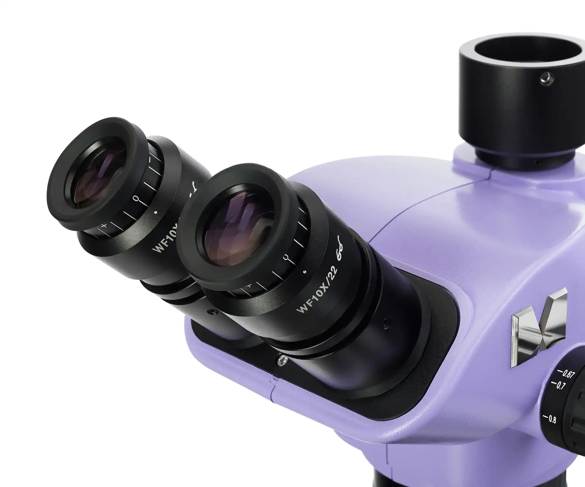Temel kit, diyopter ayarlı 10x/22 mm göz mercekleri ve gözlüklerle çalışmak için uzun bir göz mesafesi içerir.