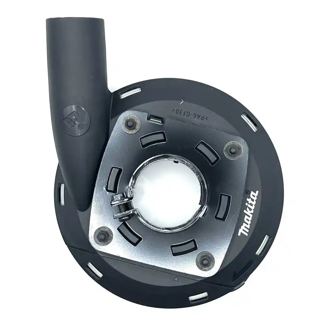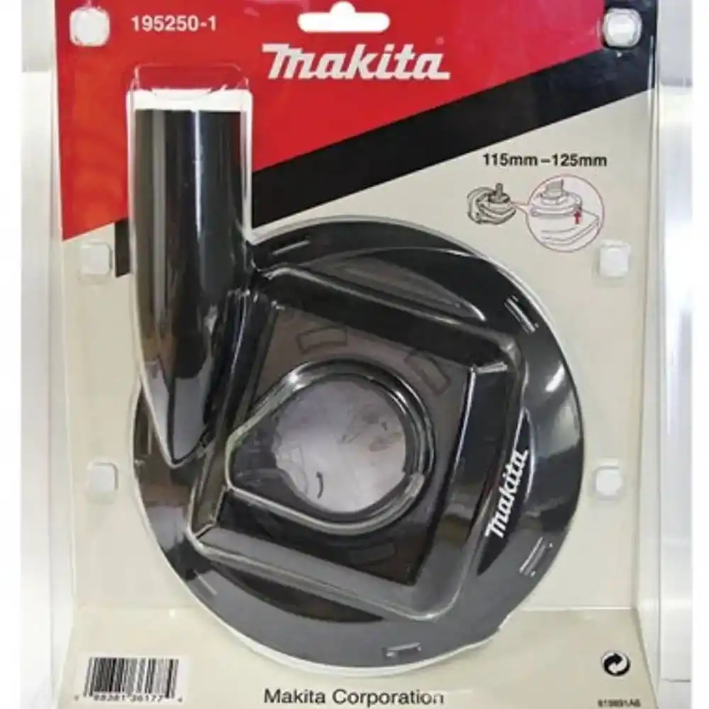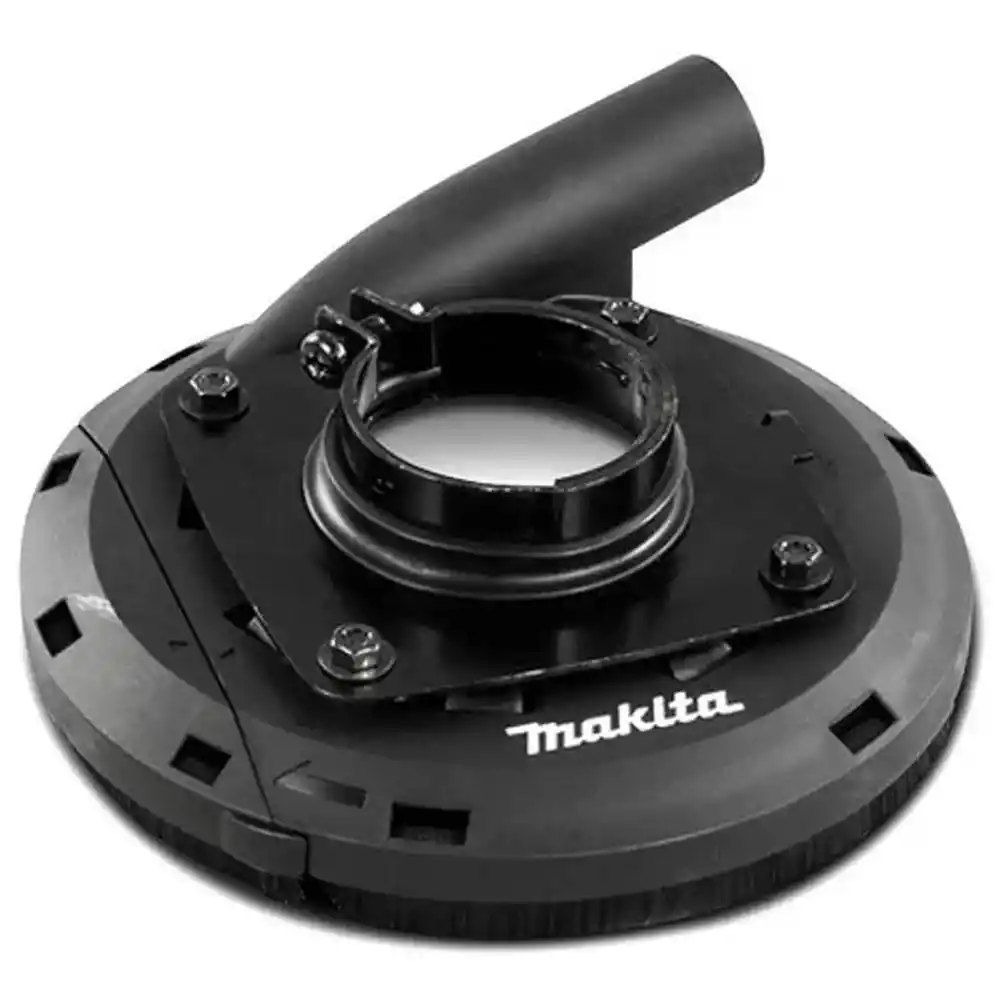 Makita 195250-1, 115mm ve 125mm avuç taşlama makinelerine takılan, elmas çanak disklerle yapılan yüzey taşlama işlemlerinde ortaya çıkan tozu vakum sistemine yönlendiren profesyonel bir koruma kapağıdır.