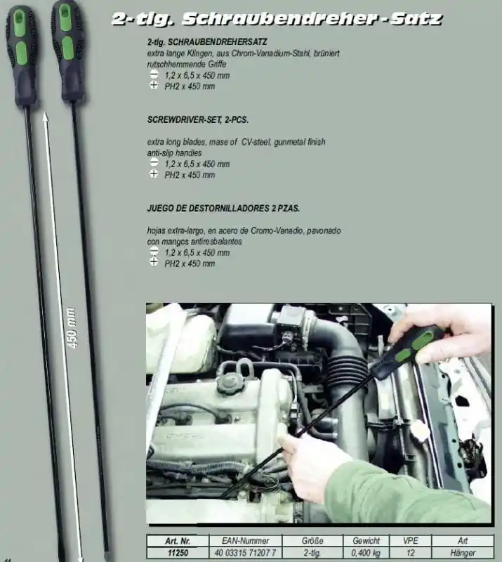 ● İki parça uzun tornavida seti: Düz 6.5 x 450mm, PH2 X450mm