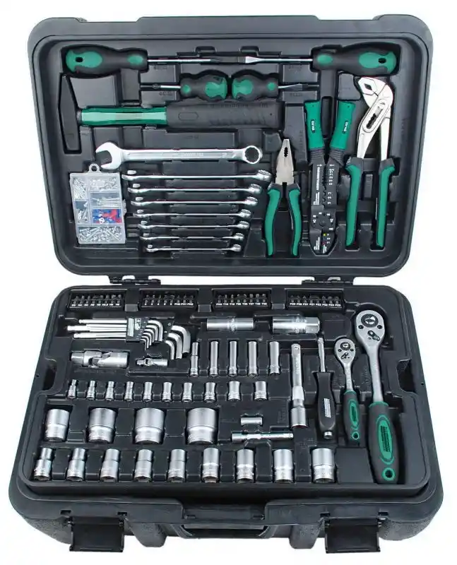 ● 122 Parça 1/4" ve 1/2" sürücü metrik lokmatakımı, anahtar ve el aletleri seti - takım arabasıyla beraber