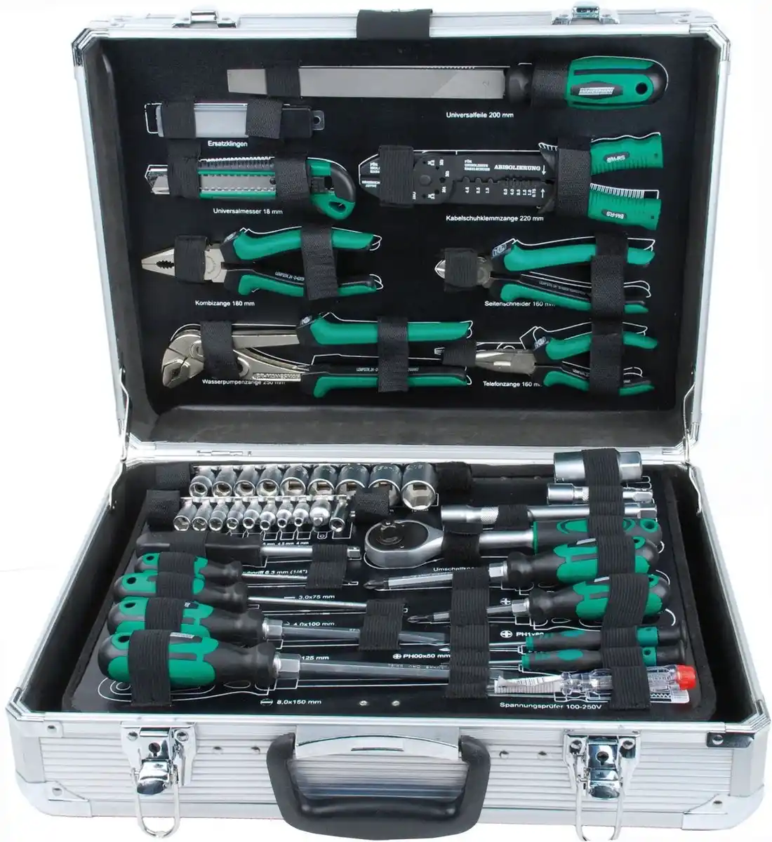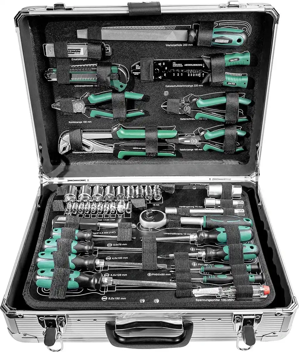 Mannesmann 29079 Alet Çantası, hem profesyoneller hem de amatörler için ideal, kapsamlı ve çok yönlü bir settir. Bu 133 parçalık set, sağlam bir alüminyum kutuda geniş bir yelpazede yüksek kaliteli alet içerir. Alet Çantası, eksiksiz ve yüksek kaliteli bir alet seti arayan herkes için değerli bir ektir. Geniş içeriği, yüksek kalitesi ve sağlam saklama kutusuyla bu set, çok çeşitli işleri verimli ve etkili bir şekilde gerçekleştirmeniz için ihtiyacınız olan her şeyi sunar. İster profesyonel ister amatör olun, bu alet çantası her türlü görev için her zaman donanımlı olmanızı sağlar.