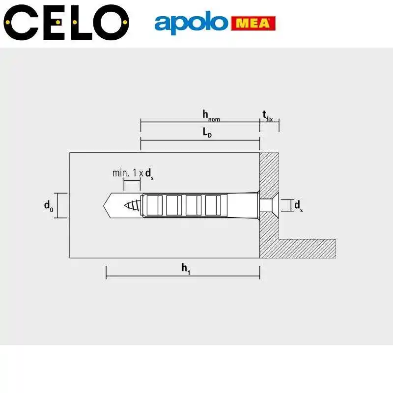 ● Dübel ilk çakıldığında, dübel tıkaçının önündeki parçalar beton içerisine gömülerek ilk tutunmayı sağlar.