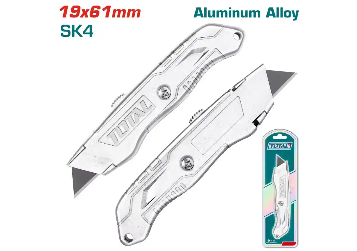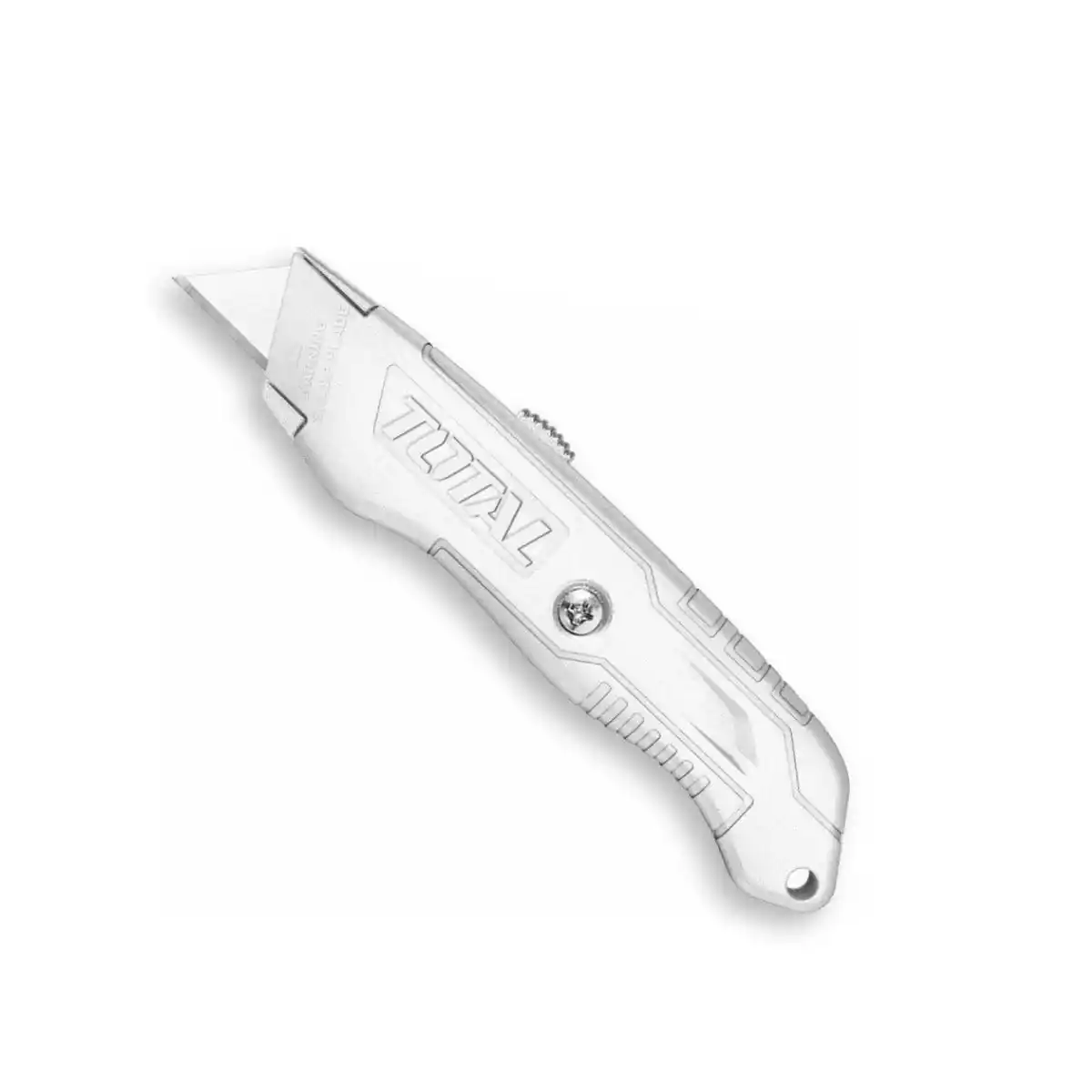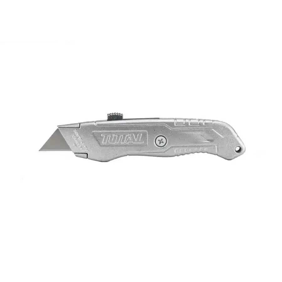 Geri çekilebilir trapez bıçağa sahip bu Total THT511615 Çok Amaçlı Metal Halı Maket Bıçağı,  deri, kauçuk, duvar kağıdı, PVC paneller ve linolyum gibi ince malzemeleri kesmek için bir el aletidir. Tamir ve inşaat işlerinde kullanılır.  Dayanıklıdır. Sade ve ergonomik şekli kullanım kolaylığı sağlar.
