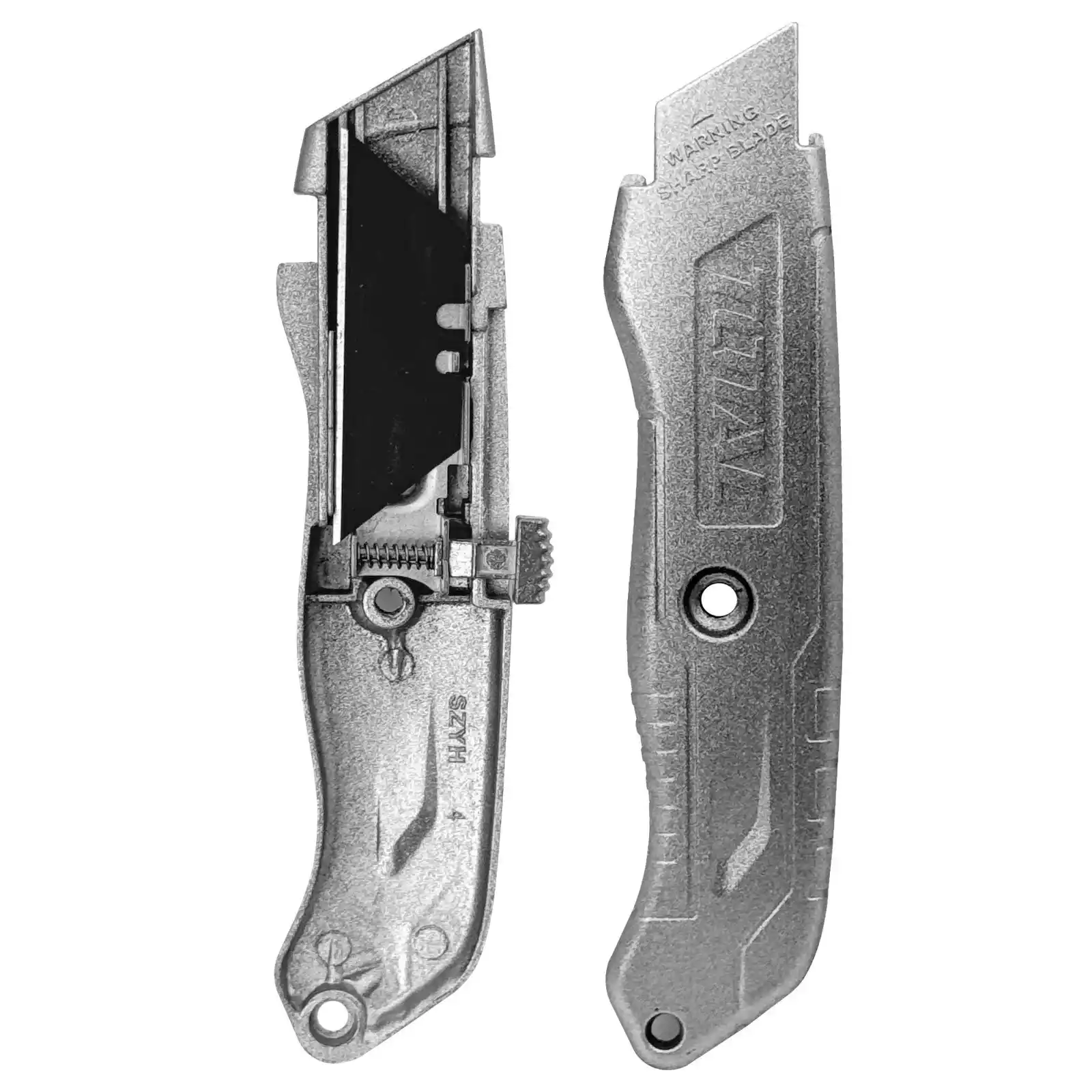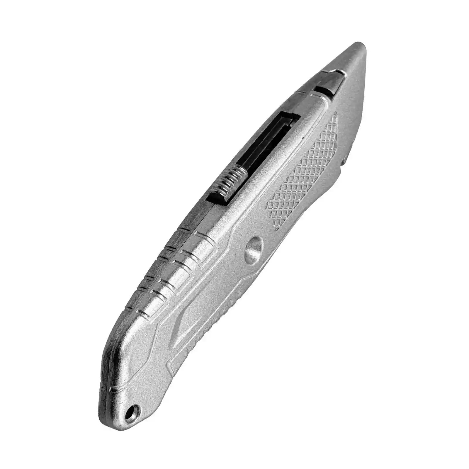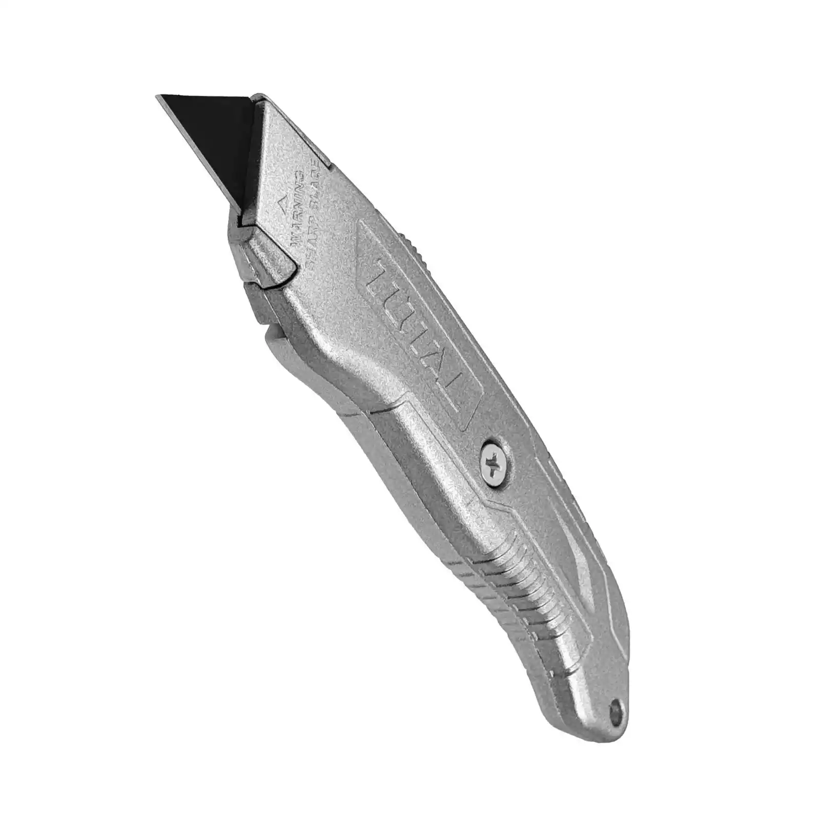 Geri çekilebilir trapez bıçağa sahip bu Total THT511615 Çok Amaçlı Metal Halı Maket Bıçağı,  deri, kauçuk, duvar kağıdı, PVC paneller ve linolyum gibi ince malzemeleri kesmek için bir el aletidir. Tamir ve inşaat işlerinde kullanılır.  Dayanıklıdır. Sade ve ergonomik şekli kullanım kolaylığı sağlar.