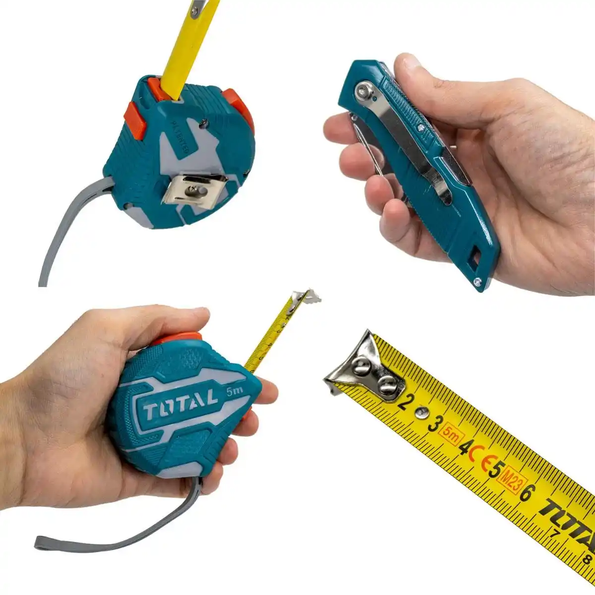 Total TOS23037E Şerit Metre ve Maket Bıçağı Falçata Seti 7 Parça