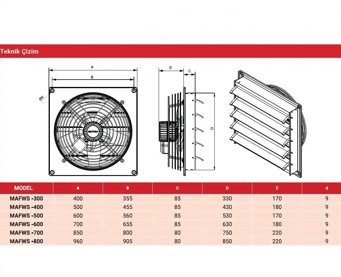 Movas MAFWS-300-2K-M Otomatik Panjurlu Monoblok Aksiyal Fan