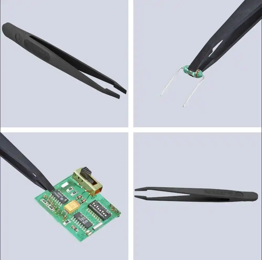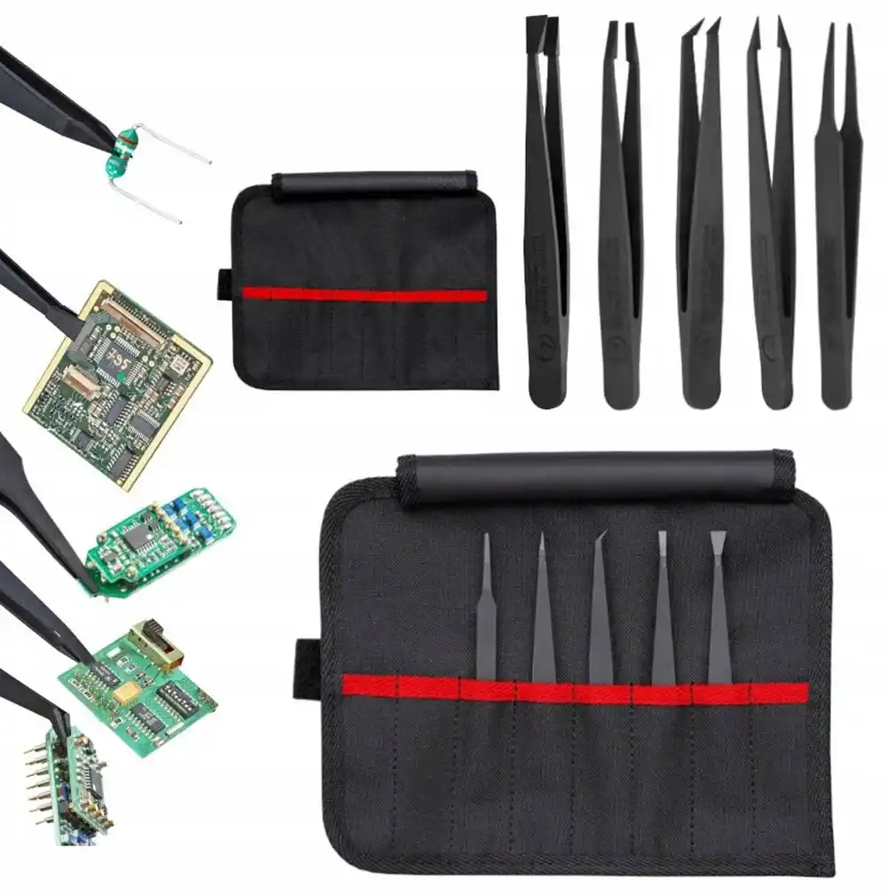 Bu set, metal cımbızların manyetik etki veya çizilme riski oluşturabileceği hassas operasyonlarda temel çözüm ortağınızdır. Çalışma prensibi, %30 karbon fiber takviyeli plastik yapısı sayesinde elektrostatik yükü kontrollü bir şekilde dağıtarak (ESD) hassas entegre devrelerin yanmasını engellemektir. Set içeriğindeki farklı formlar (sivri, küt, eğri ve yassı), operatöre her türlü küçük parçayı ergonomik bir şekilde kavrama ve yerleştirme imkanı tanır. Tamamen antimanyetik ve asit dirençli yapısıyla teknik laboratuvar standartlarını karşılar.