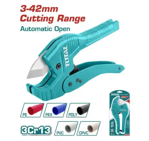 Total THT53422 Pprc Plastik Boru Makası 42mm ile hassas ve zahmetsiz boru kesimi yapın. Bu boru kesici, pprc plastik borularda temiz ve hassas kesimler sağlamak için uzmanca tasarlanmıştır. 3 mm ile 42 mm arasında kesme kapasitesiyle, çok çeşitli boru boyutlarına uygundur. Dayanıklılık ve kullanım kolaylığı için tasarlanan Total pprc plastik Boru Kesici Makas, tesisat ve boru projeleriniz için vazgeçilmez bir araçtır.