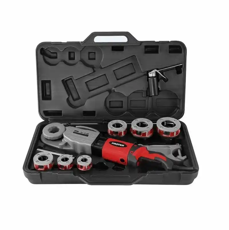 Proter PR 1720 2''Elektrikli El Tipi Boru Pafta Makinesi, hafif ve taşınabilir bir tasarıma sahiptir ve kolayca taşınabilir. Ayrıca, birkaç farklı boru boyutunda iş parçası oluşturmak için değiştirilebilir pafta uçlarına sahiptir.