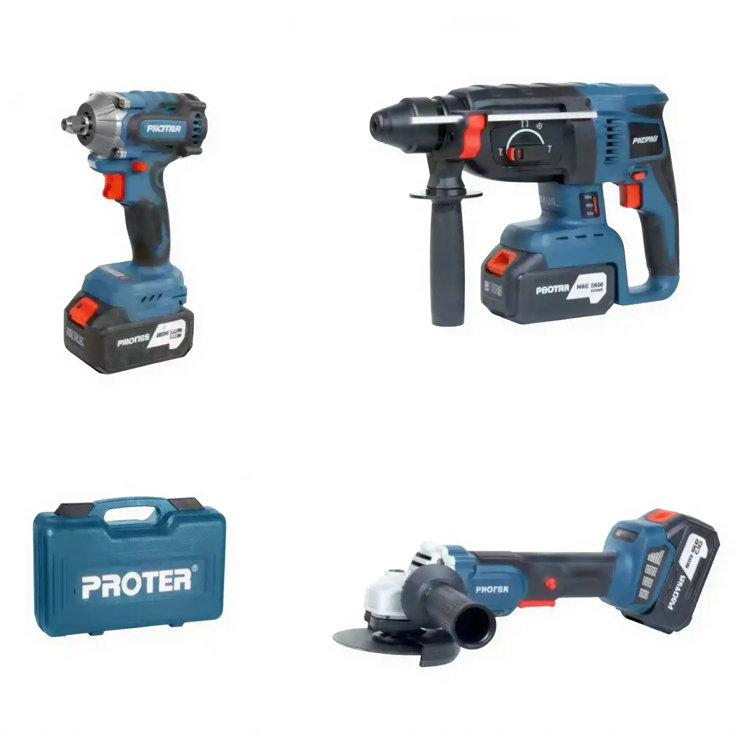Atölyenizde veya şantiyede ihtiyacınız olan en temel üç gücü tek bir pakette buluşturan Proter PST 913 Quatro Akülü Set, profesyonel kullanıcılar için hareket özgürlüğü ve yüksek performansı bir araya getiriyor. Kırıcı delici, avuç taşlama ve somun sökme makinelerinden oluşan bu "Quatro" seri, işlerinizi hızlandırmak ve kablo karmaşasına son vermek için tasarlandı.