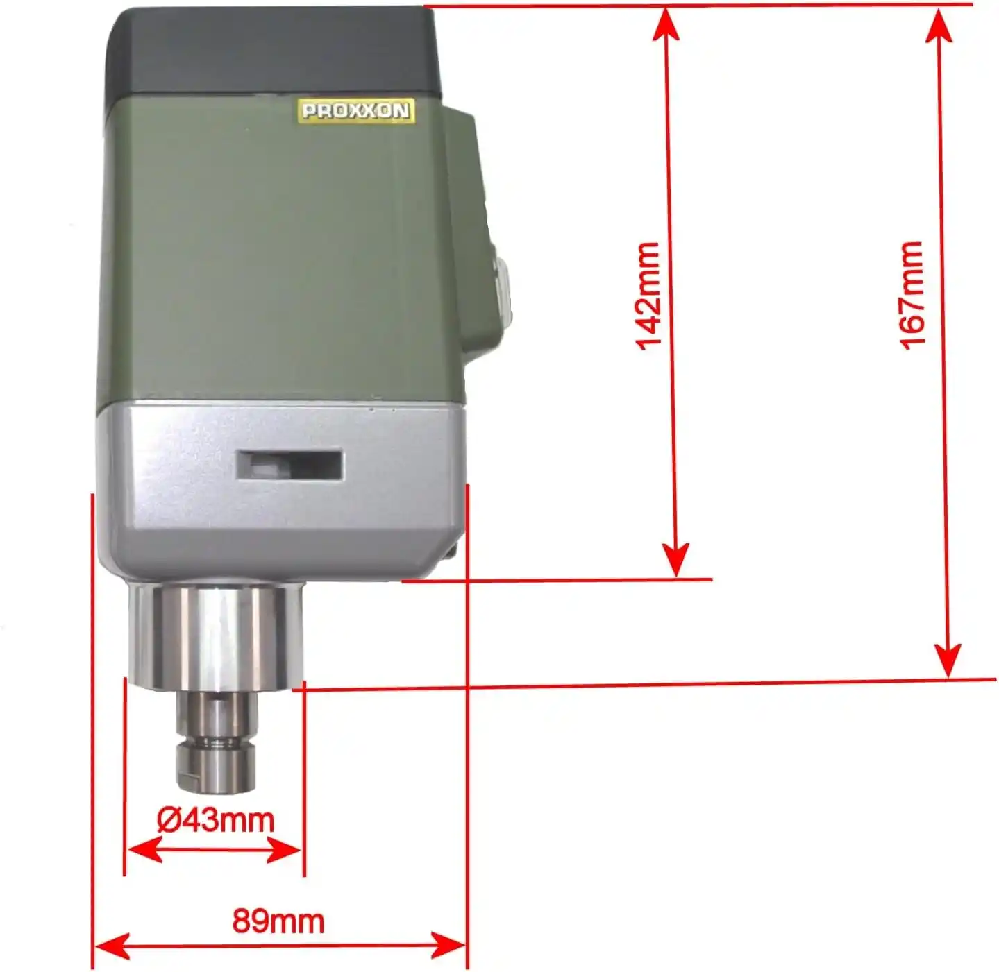 Motor tabanı döküm alüminyumdan yapılmıştır ve bu sayede hem standart MICROMOT matkap sehpalarına (20 mm yakalı ) hem de 43 mm sıkıştırma yakalı (Avrupa standardı) Proxxon BFB2000 sehpasına (veya üniversal sehpalara) monte edilebilir .