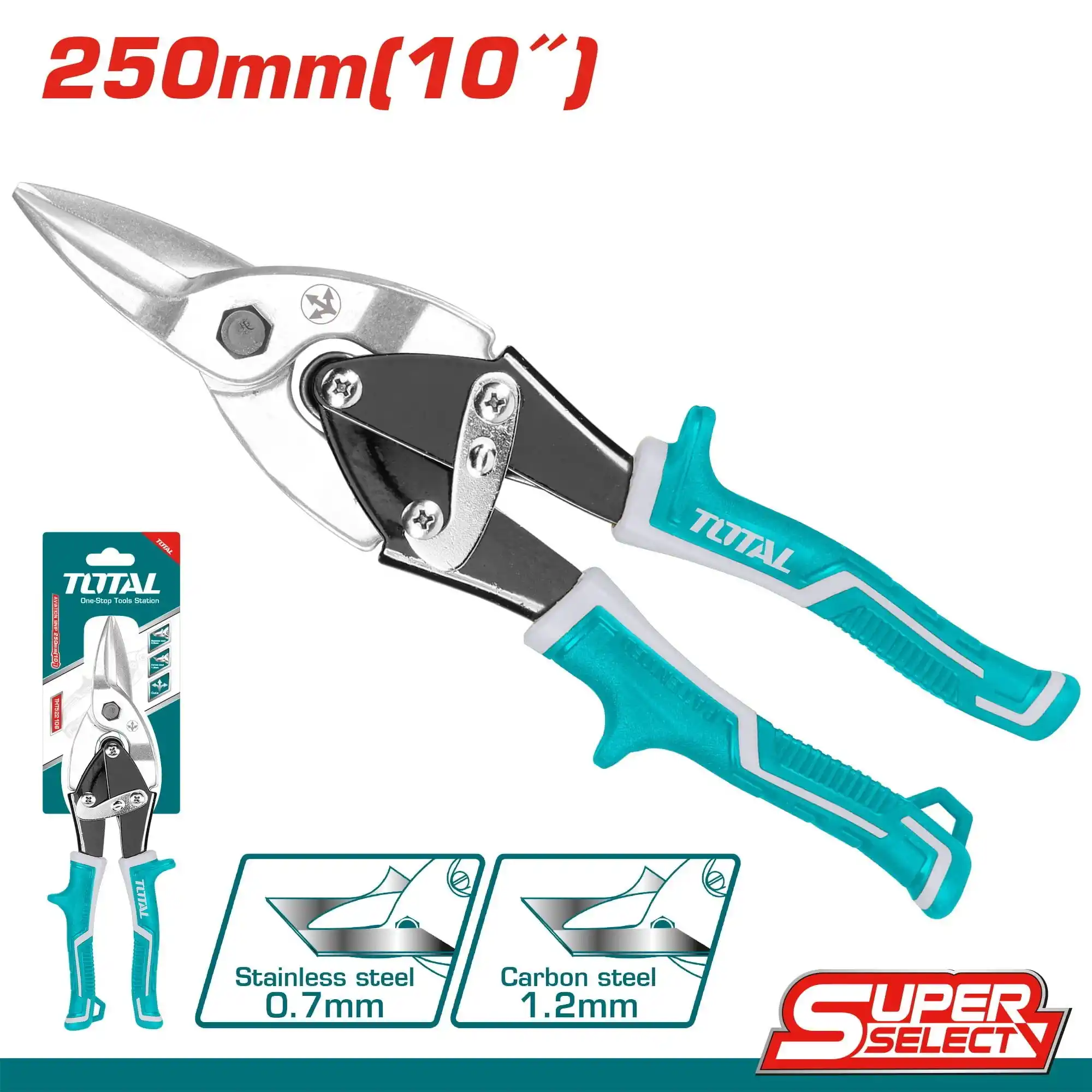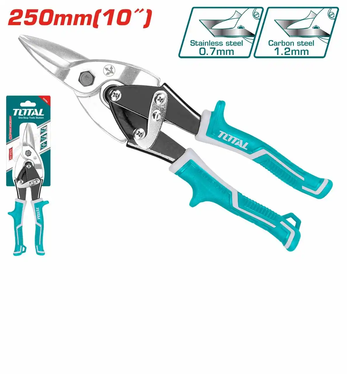Total THT522106 Düz Metal Saç Makası, çelik sacları rahatça ve kolayca kesmenizi sağlayan hafif düz makaslardır. Bıçaklar, kesme sırasında kaymayı önleyecek şekilde tasarlanmıştır ve sac ve paslanmaz çelik kesmek için kullanılabilir.