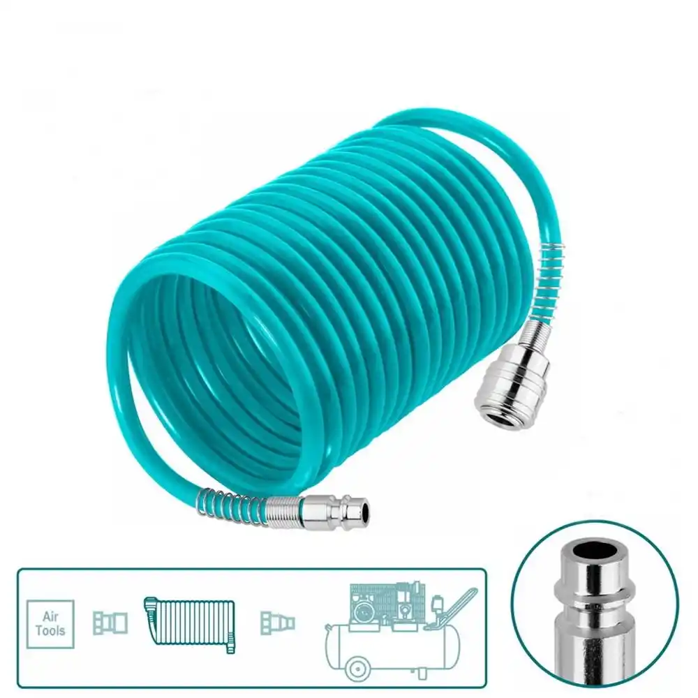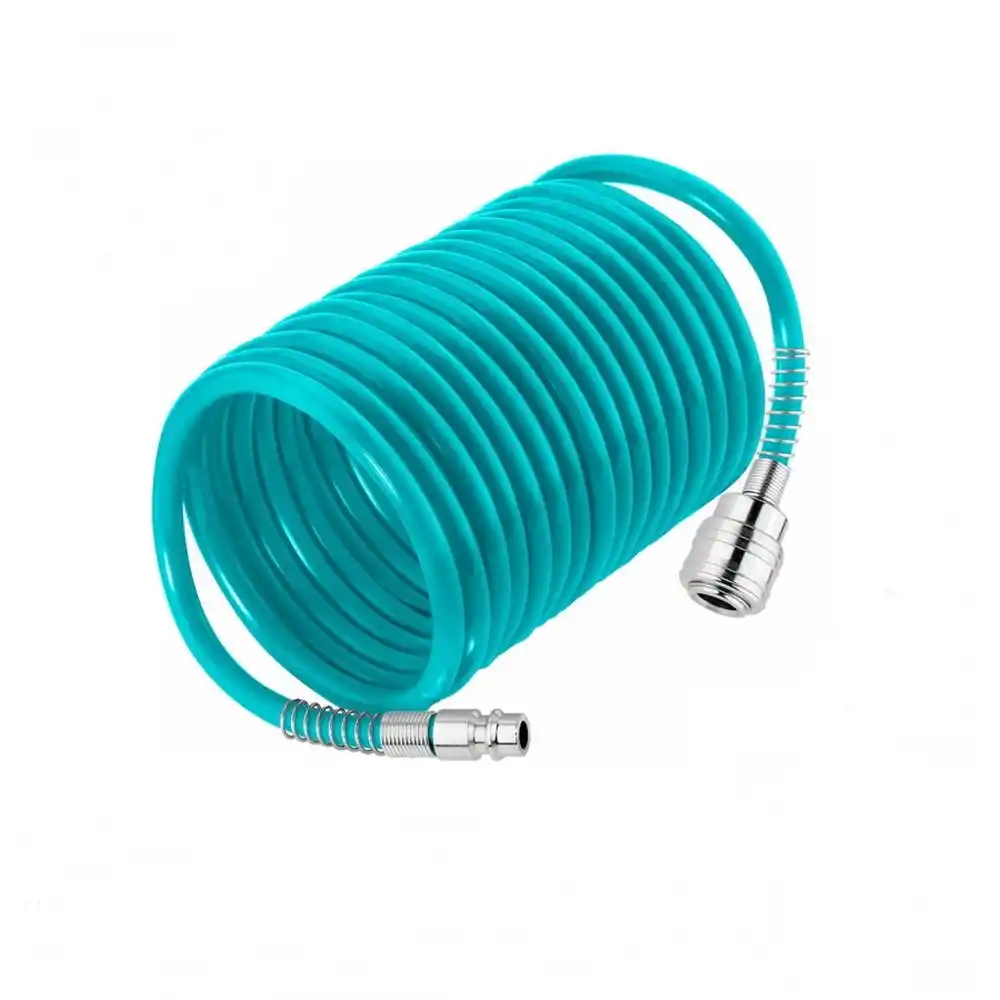 Eğer kompresörün hemen yanında veya tezgah üstünde çalışıyor, hortumun toplanmasını istiyorsan: Bu 5 metrelik spiral hortumu seçmelisin.