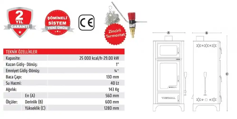 Thermall T-25 Dşk Dikey Şömine Fırınlı Kat Kalorifer Sobası