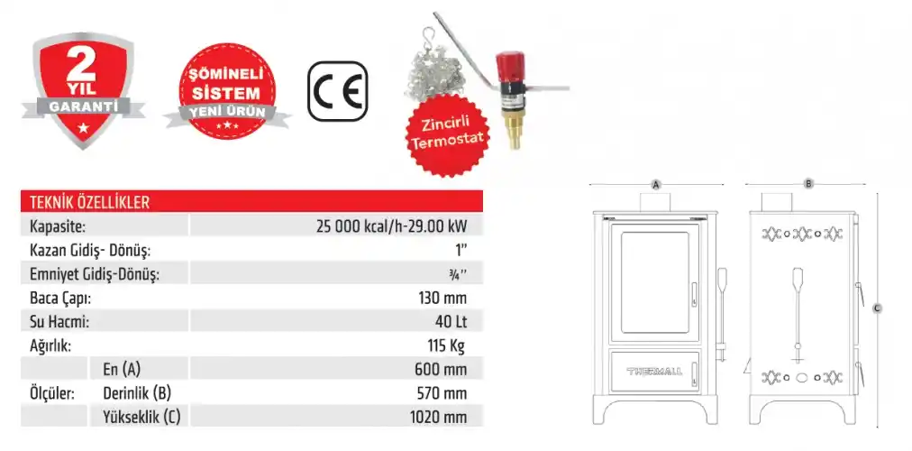 Thermall T-25 Mşk Mini Şömineli Kat Kalorifer Sobası Genel Özellikler