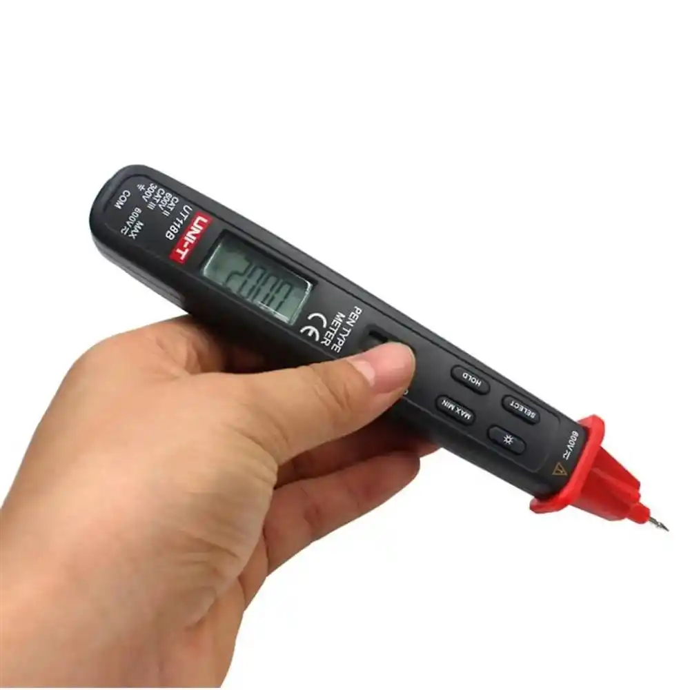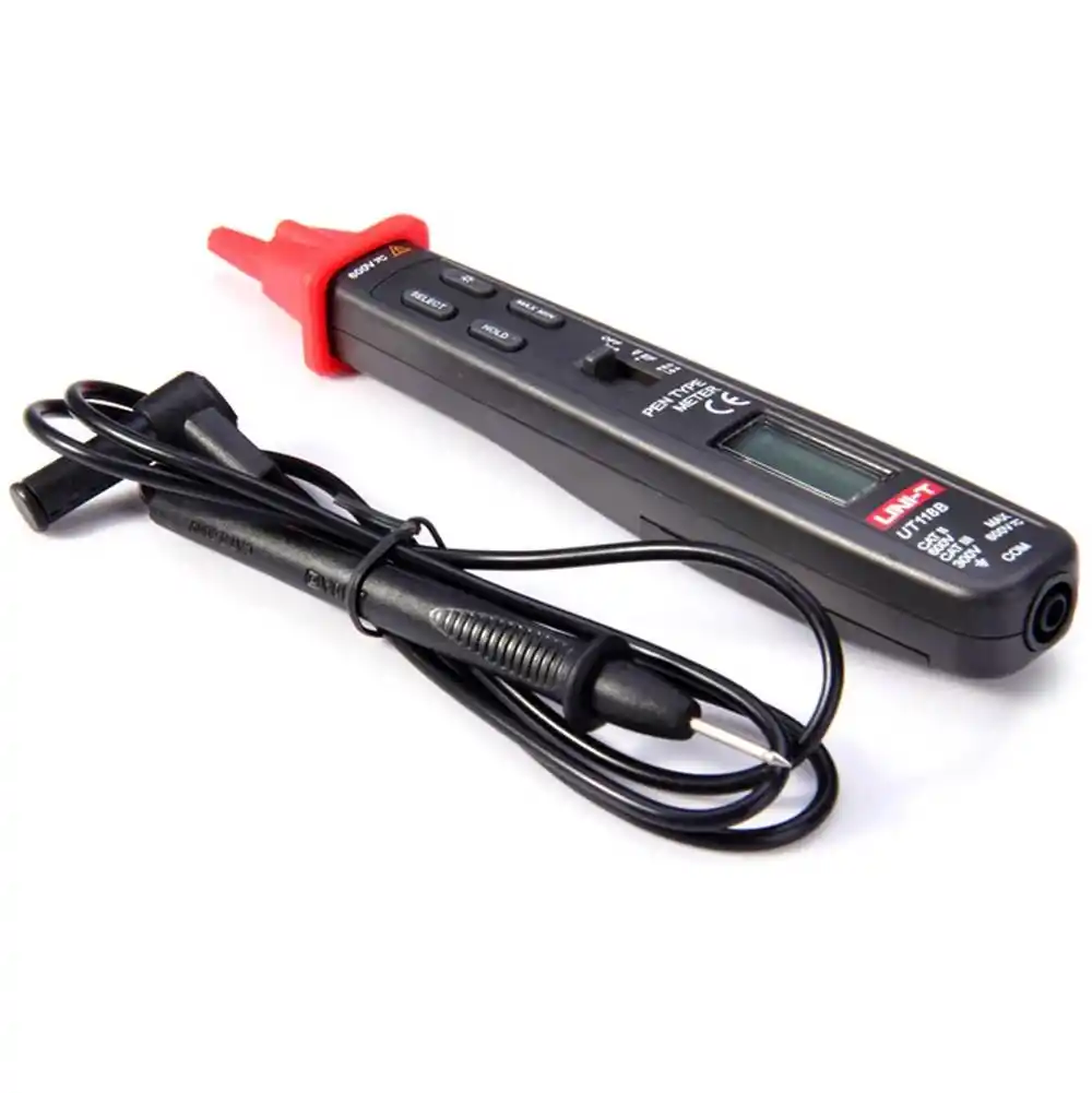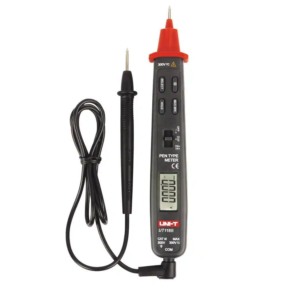 Uni-T UT118B, tek elle kullanım için ergonomik olarak tasarlanmış, voltaj, direnç ve kapasitansı otomatik olarak algılayabilen ultra kompakt bir kalem tipi dijital multimetredir.