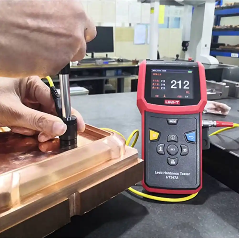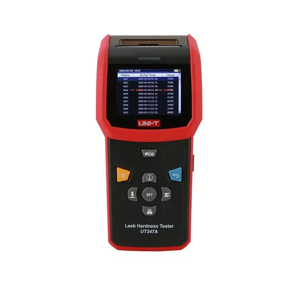 Uni-T UT347A, Leeb dinamik sertlik ölçüm prensibiyle çalışan, metal malzemelerin sertliğini tahribatsız bir şekilde ölçerek HRC, HRB, HB, HV gibi farklı birimlere dönüştüren dijital bir test cihazıdır.